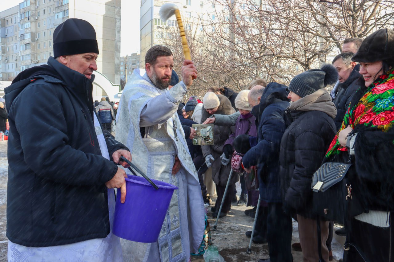 – Я поздравляю всех с праздником и уверена, что освященная вода принесет вам в дом радость, принесет вам здравие, – подчеркнула Яна Пащенко. – Хотелось бы пожелать нашему верховному главнокомандующему терпения и здоровья, а нашим воинам – веры в мирное небо, которое, мы надеемся, наступит уже в этом году.