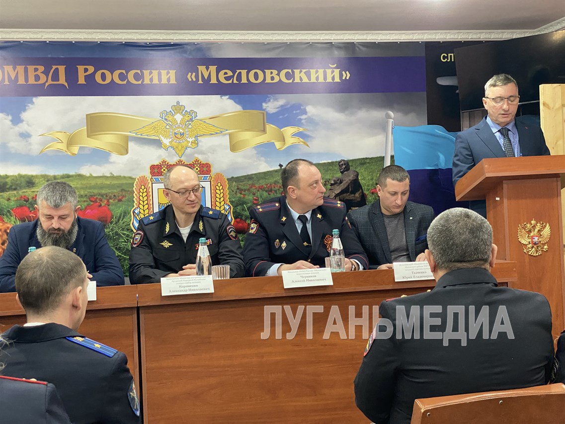 В совещании приняли участие заместитель министра внутренних дел по ЛНР генерал-майор полиции А. Н. Корниенко, и. о. прокурора Меловского района младший советник юстиции Ю. В. Ткаченко и глава Меловского муниципального округа О. П. Савченко.