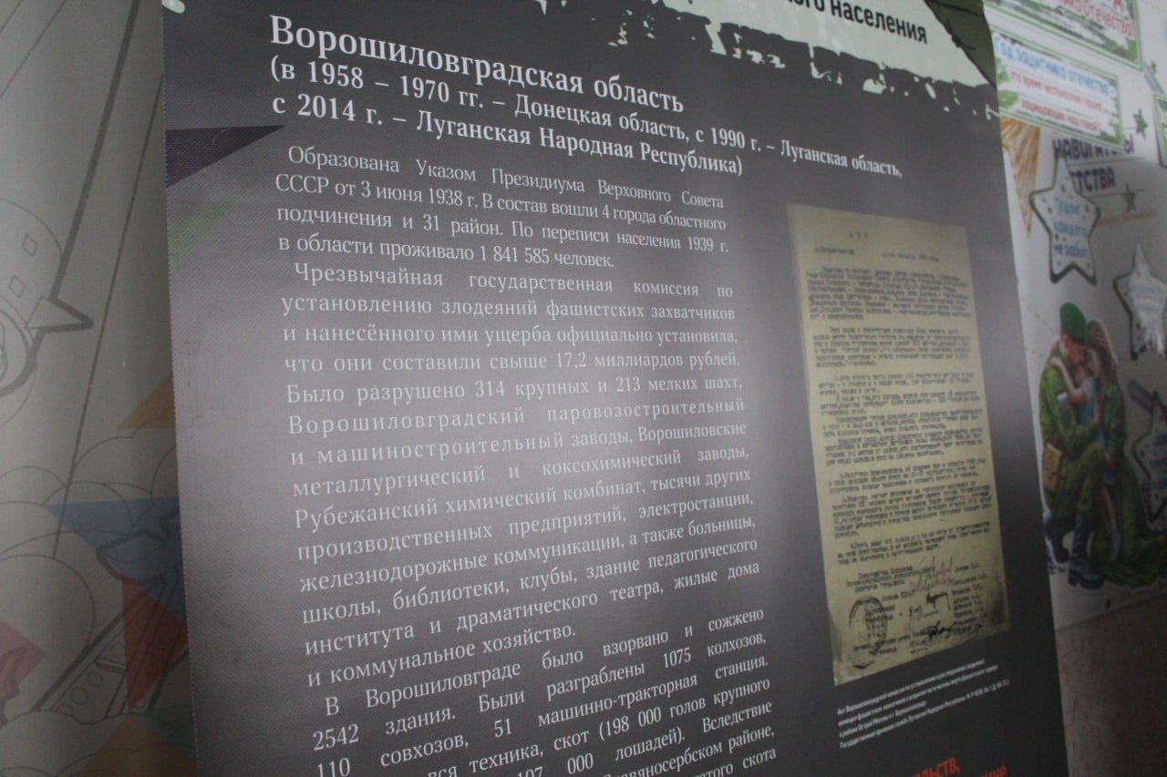 В рамках партпроекта «Историческая память» при поддержке Луганского реготделения «Поискового движения России» и Славяносербской центральной районной библиотеки в Лотиковской школе состоялась презентация выставки «Без срока давности».