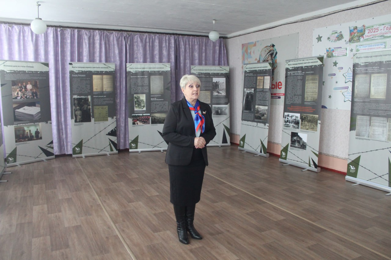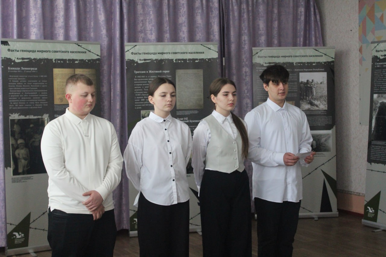 Школьники познакомились с материалами, демонстрирующими более 30 документов из 9 федеральных и региональных архивов, музеев и личных коллекций исследователей о трагедии мирного населения на оккупированной территории Донбасса, преступлениях нацистов и их пособников против советского населения в годы Великой Отечественной. В дни 83-ой годовщины прорыва блокады Ленинграда особое внимание уделили жизни мирного населения в осажденном городе.