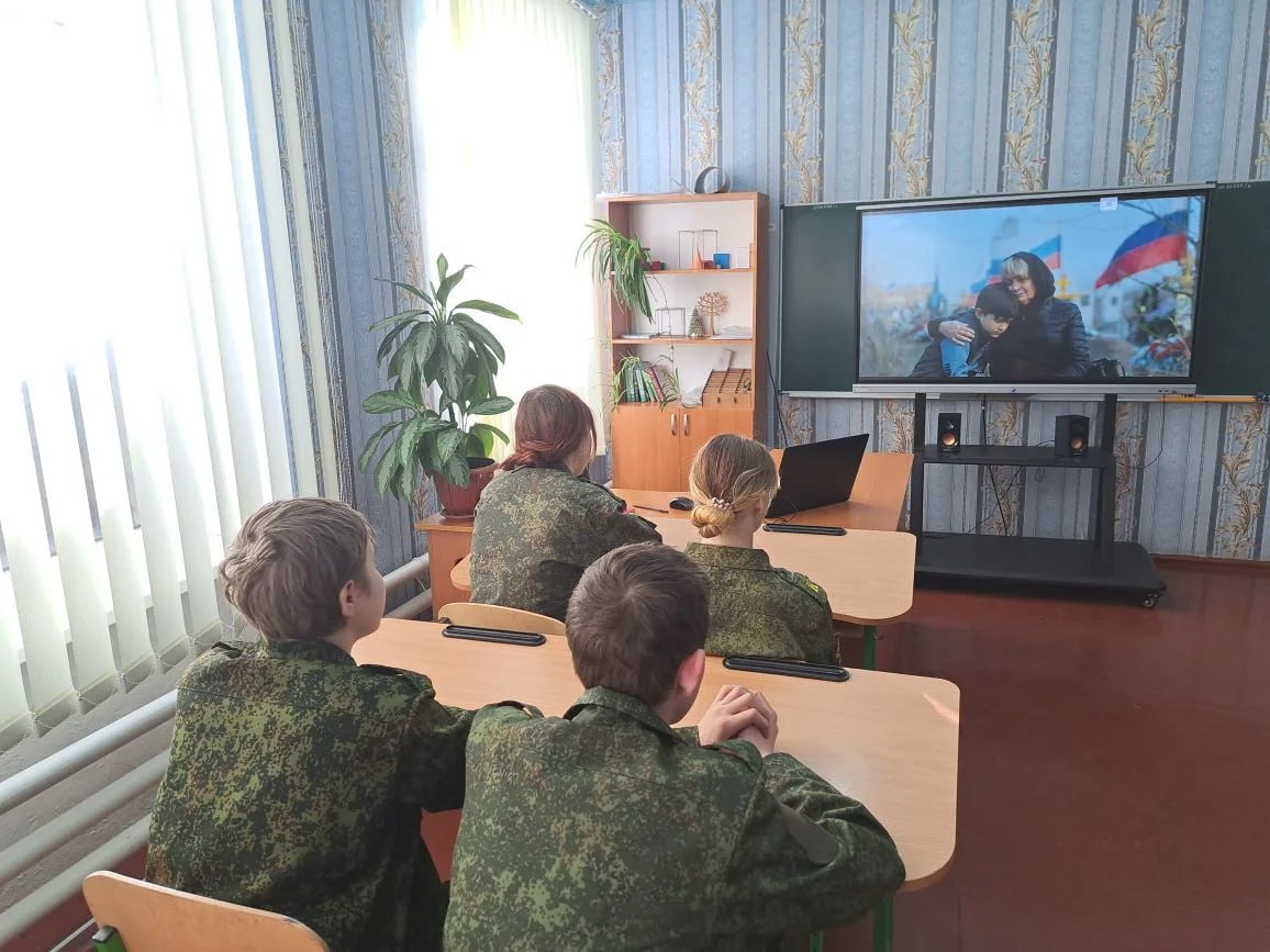 В рамках реализации концепции "Луганский характер" и проекта "Киноуроки в школах России" сегодня в Станично-Луганской средней школе имени Грекова П.М. для учащихся казачьего 8-А класса прошёл особый просмотр. Под руководством классного руководителя Пелых Л.М. ребята увидели фильм "Счастливые люди", действие которого разворачивается на территории Луганской Народной Республики.
