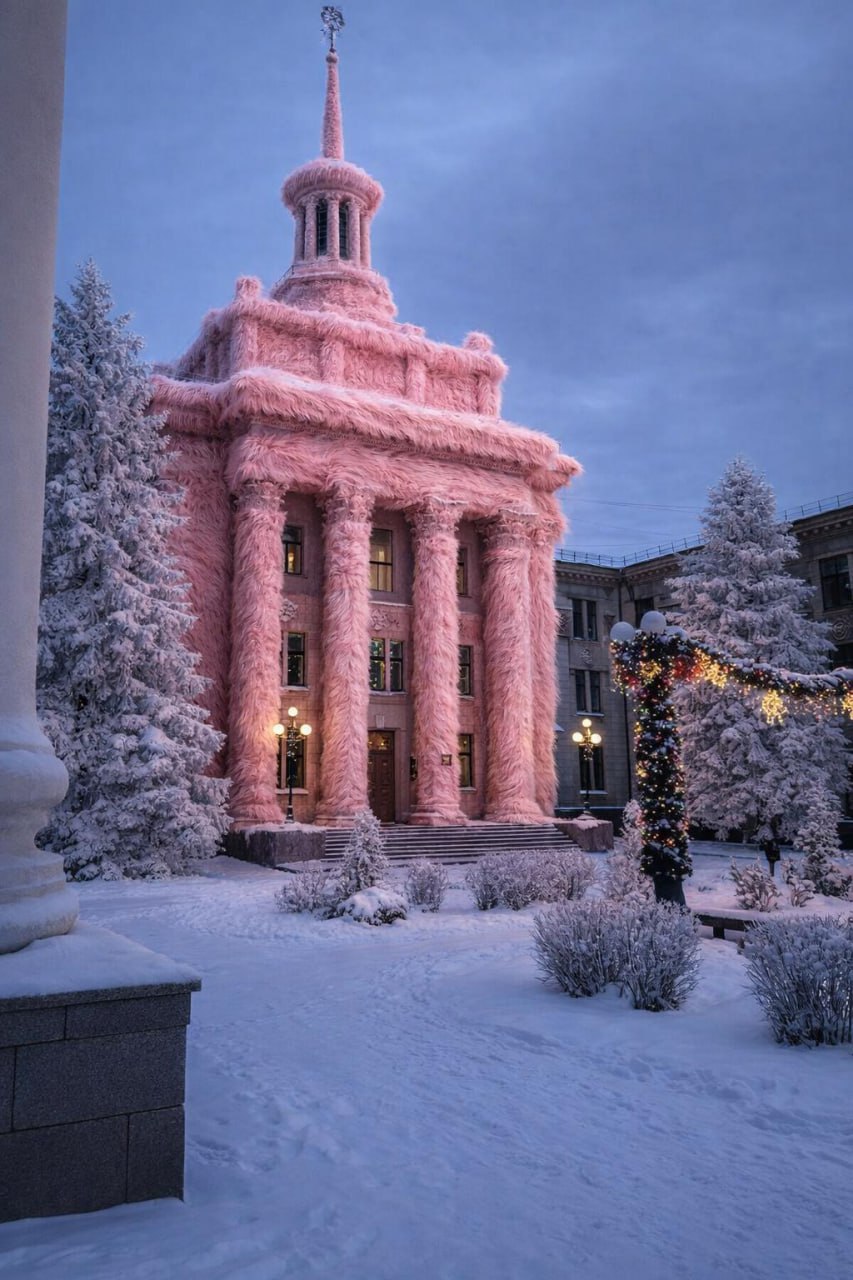 Каждый уголок, каждая улочка теперь словно сошла с обложки детской книжки. А серьёзные здания превратились в милые розовые домики!