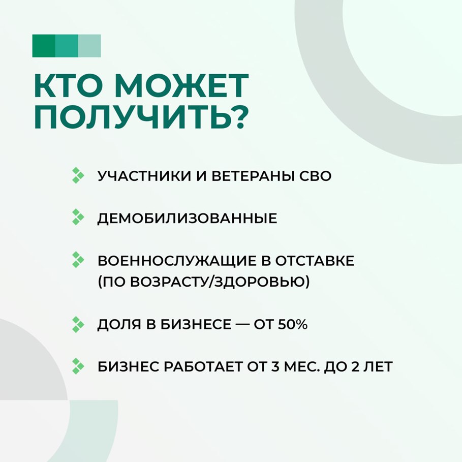 Участники и ветераны СВО, демобилизованные и военнослужащие в отставке (по возрасту или состоянию здоровья), владеющие собственным бизнесом или имеющие долю от 50% в уставном капитале ООО, могут воспользоваться специальной программой микрофинансирования для развития своего дела.