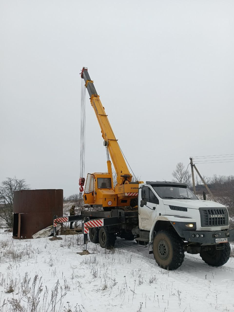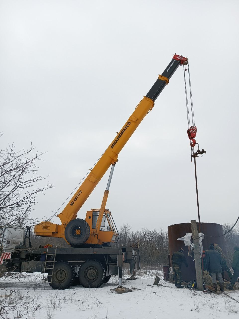 При помощи крана Ивановец, переданного в безвозмездное пользование шеф-регионом Ивановской областью, в селе Сычанское Марковского муниципального округа извлекли вышедший из строя водный насос, подающий воду в село Лобасово.