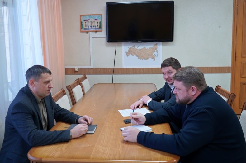 Временно исполняющий полномочия Главы Свердловского муниципального округа ЛНР Игорь Ковальчук провел рабочую встречу с заместителем министра строительства и жилищно-коммунального хозяйства Красноярского края Юрием Шестопаловым и представителем делегации Красноярского края в нашем округе Игорем Мирошниковым.