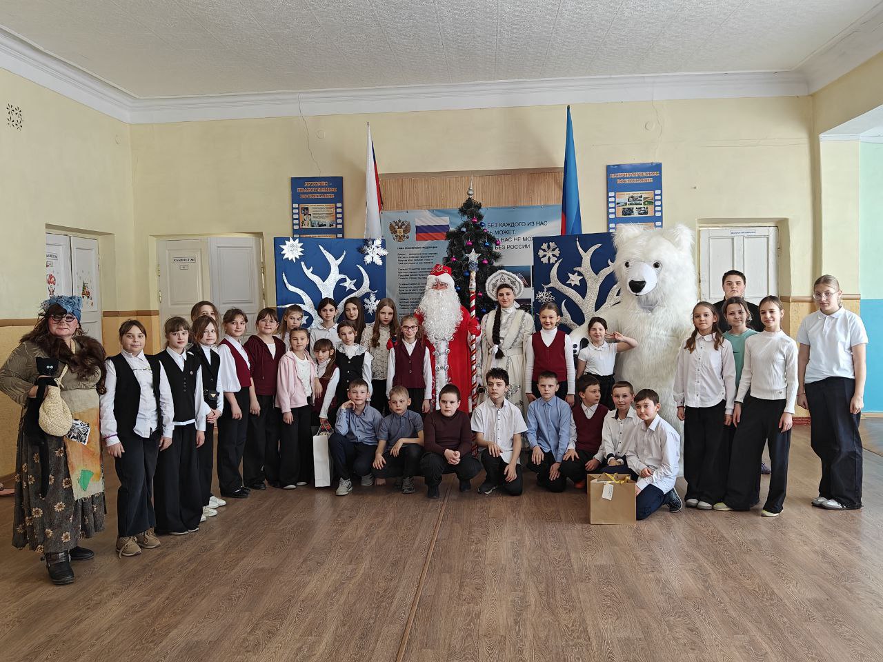 Цель их визита поздравить коллектив, учащихся и их родителей с прошедшими зимними праздниками.