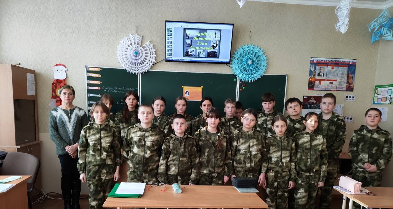 Школьникам рассказали о трагических страницах блокады Ленинграда и о судьбе Тани Савичевой, чей дневник стал одним из символов Великой Отечественной войны. Учащиеся посмотрели тематический видеоролик и презентацию, посвящённые этим событиям.