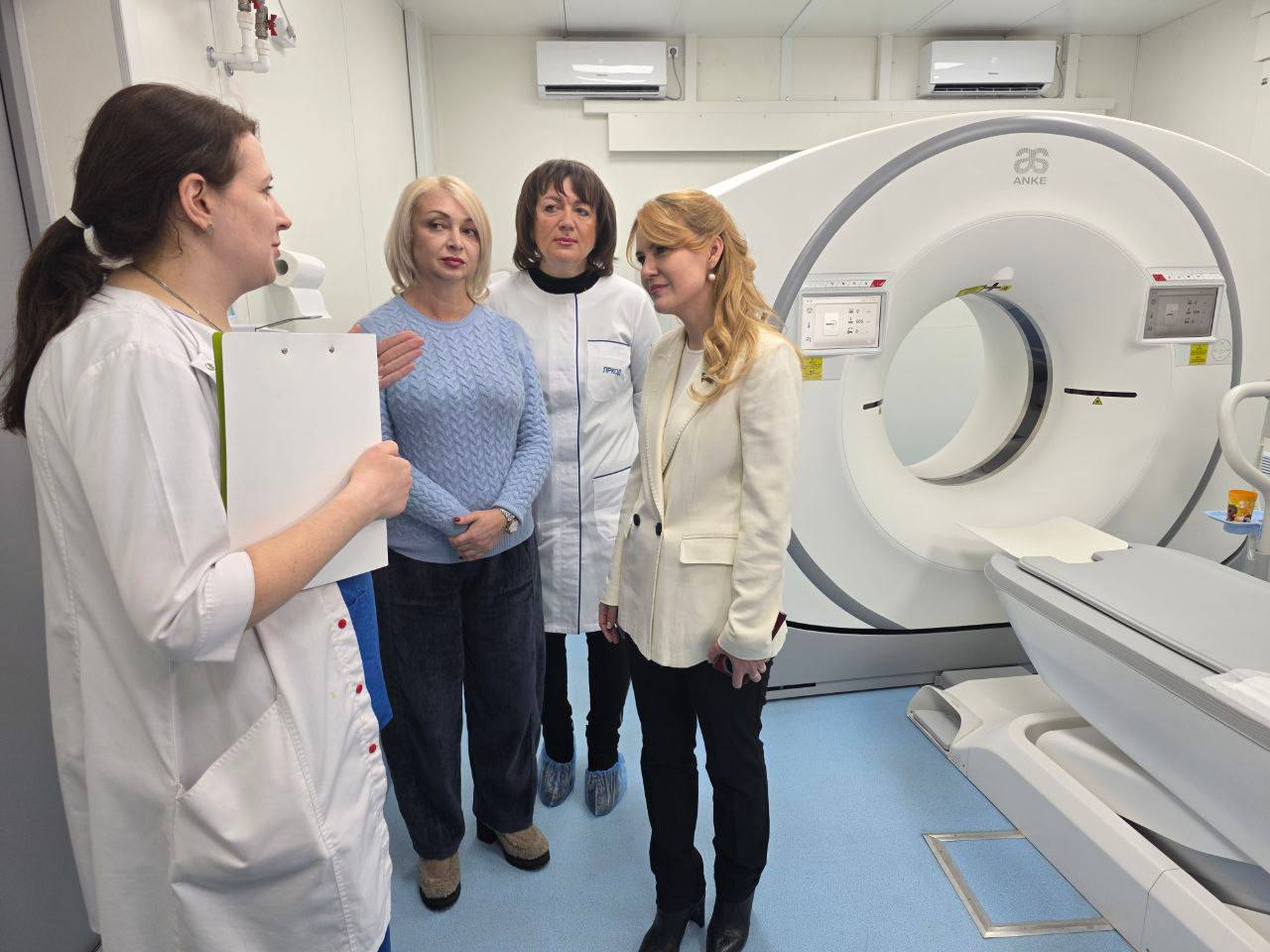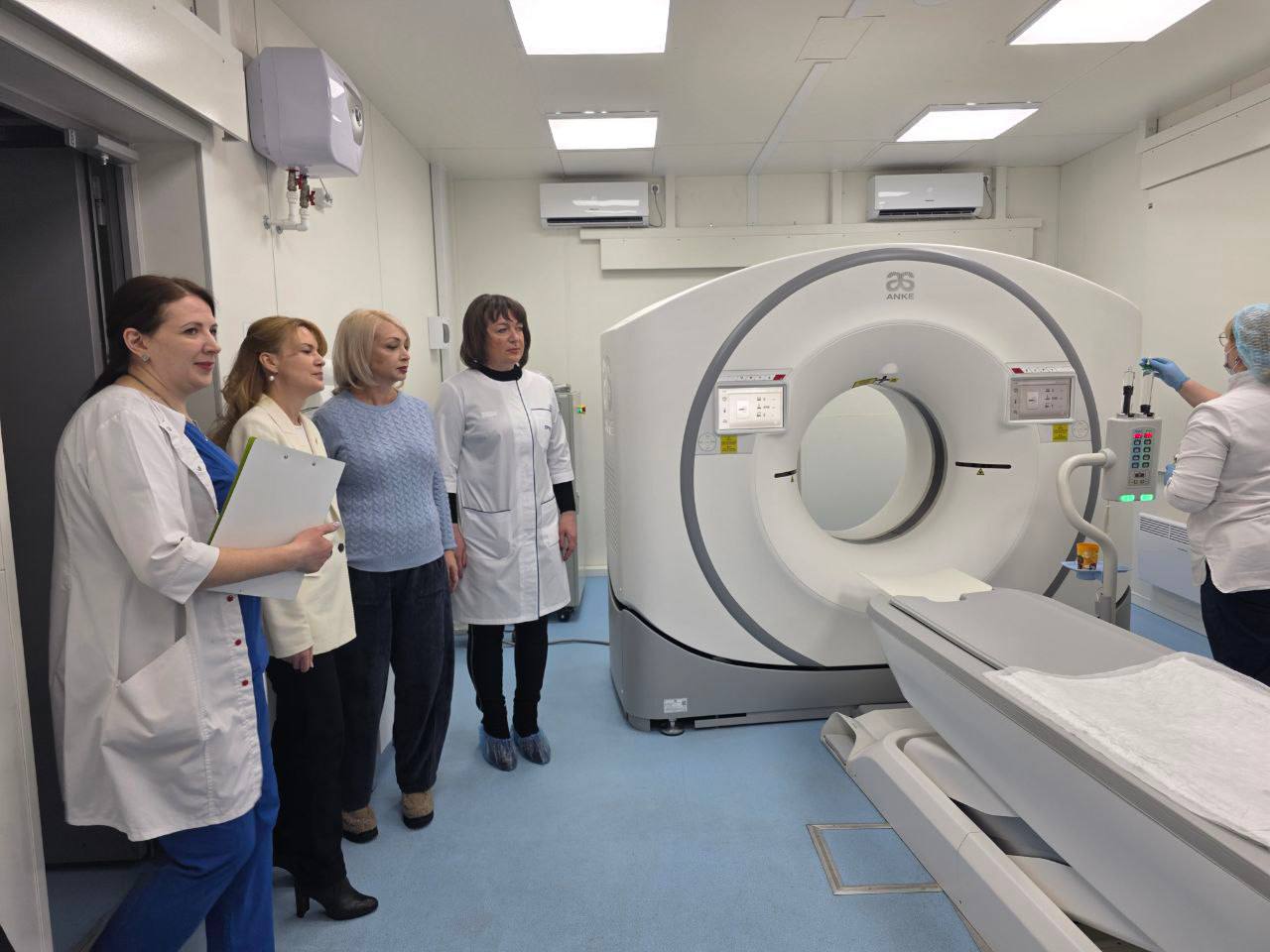 Главный повод для визита — в лечебном учреждении введен в эксплуатацию уникальное для Республики оборудование, которое в буквальном смысле меняет качество медицинской помощи. В диспансере работает компьютерный томограф экспертного класса ANKE ANATOM Precision.