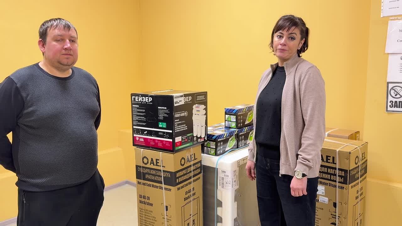 С глубокой благодарностью сообщаю: при поддержке Уполномоченного по правам человека в Российской Федерации Татьяны Николаевны Москальковой и Межрегиональной общественной организации гуманитарной помощи «Русский мир» эвакуированным передан значительный гуманитарный груз. Его состав продуман до мелочей — с учётом суровых погодных условий, эпидемиологической обстановки и самых насущных бытовых нужд. Здесь не просто предметы, а техника, критически необходимая для восстановления обыденного уюта: автоматические диспенсеры для воды, рециркуляторы воздуха, утюги, система обратного осмоса, стиральная машина и другая бытовая техника.