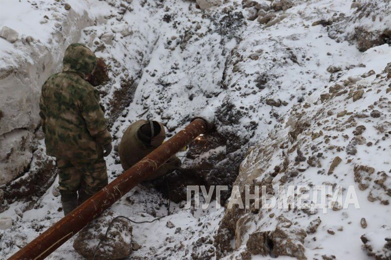 Специалисты Свердловского департамента ГУП ЛНР «Лугансквода» проводят ремонтные работы на водоводе