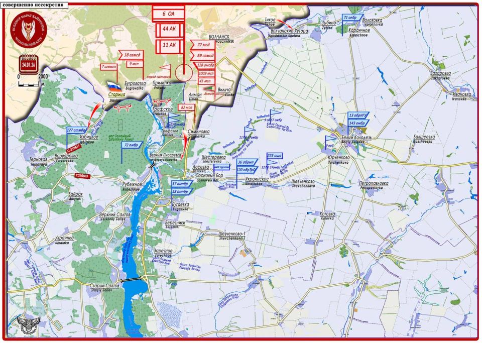 Армия России активными действиями вдоль русла реки Северский Донец отсекает участок Белый Колодезь - Великий Бурлук от основной территории Харьковской области Короткая сводка с фронта 24 января 2026 года