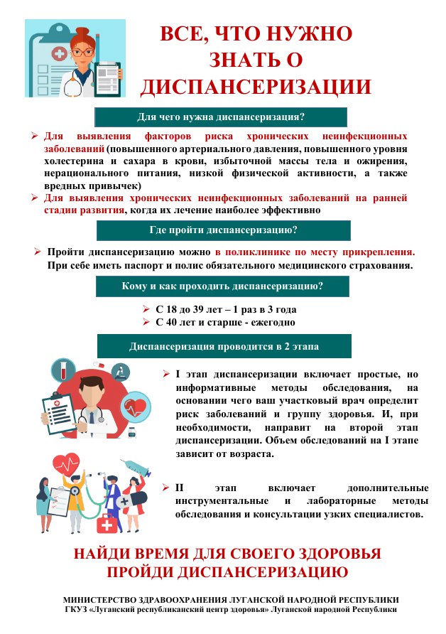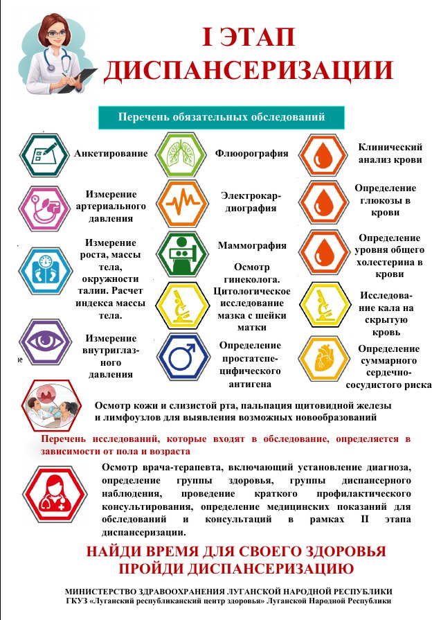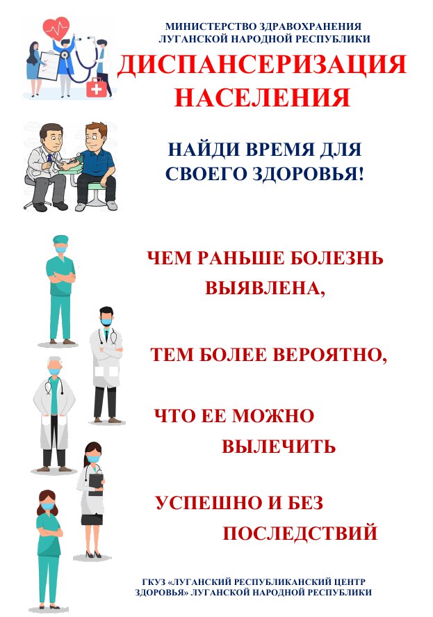 Министерство здравоохранения Луганской Народной Республики информирует о важности прохождения профилактических осмотров и диспансеризации определенных групп взрослого населения