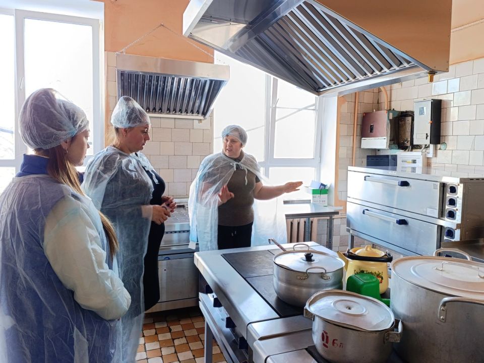 В ходе визита участники осмотрели пищеблок, столовую и складское помещение, познакомились с технологическим процессом приготовления блюд и побеседовали с администрацией и поварами школы.