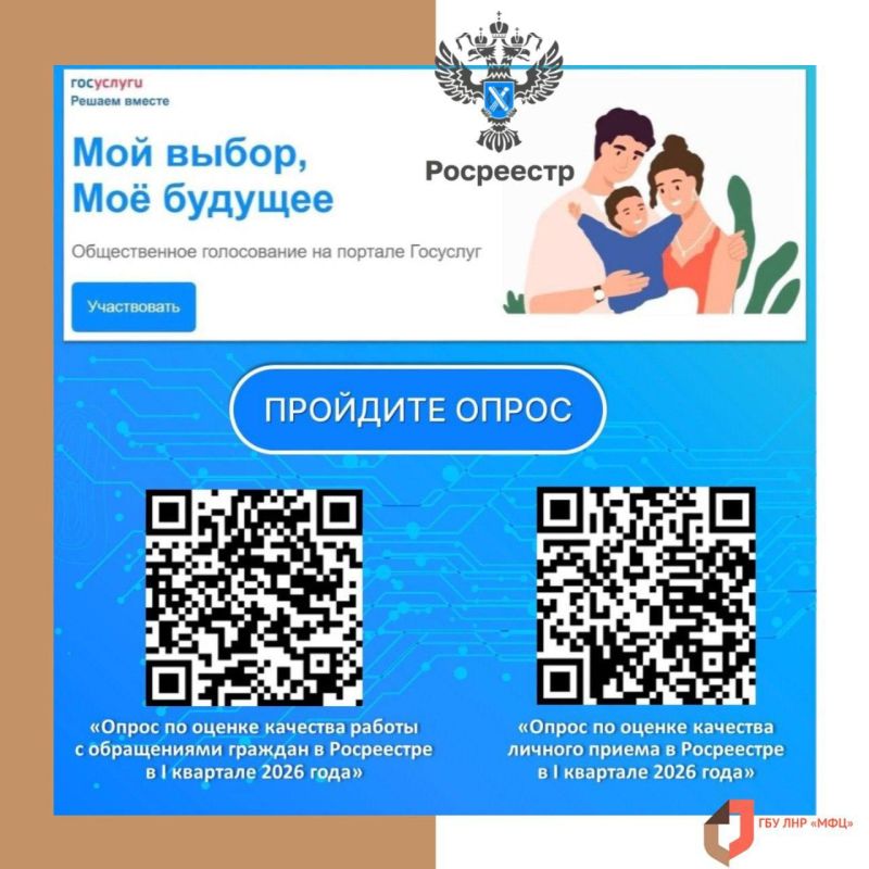Управление Росреестра по ЛНР приглашает граждан принять участие в опросах, направленных на оценку качества предоставляемых государственных услуг.