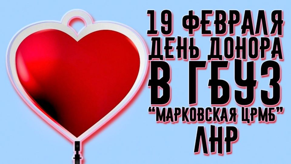 19 февраля 2026 года (среда) на базе ГБУЗ «Марковская ЦРМБ» ЛНР будет работать выездная бригада Луганской станции переливания крови.