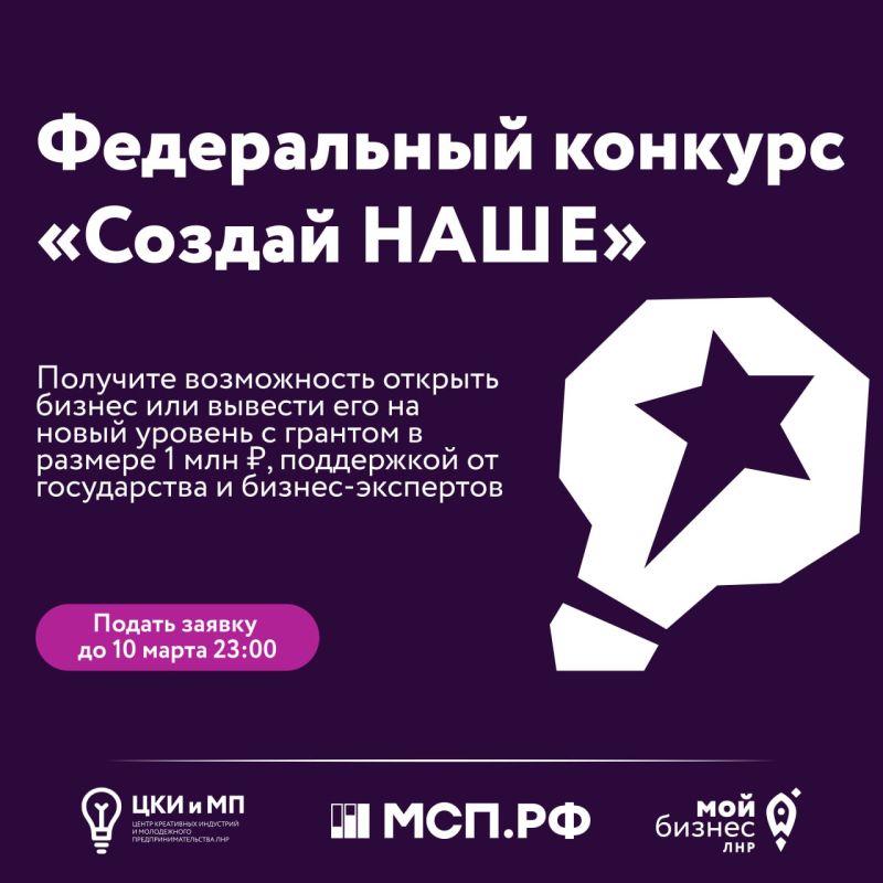 —Прием заявок на федеральный конкурс «Создай НАШЕ» до 10 марта, 23:00 (по МСК).
