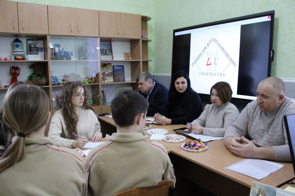 В Доме детского и юношеского творчества Троицкого муниципального округа состоялась встреча юных журналистов и юнармейцев с Главой Администрации муниципального округа Ларисой Васильевной Резниковой. В мероприятии также приняли участие директор Дома детского и юношеского творчества Галина Александровна Коваленко, начальник отдела агропромышленного развития и сельского хозяйства Алексей Григорьевич Сирота и начальник ГБУ "Станция по борьбе с болезнями животных Троицкого района" Валентин Иванович Щербина.