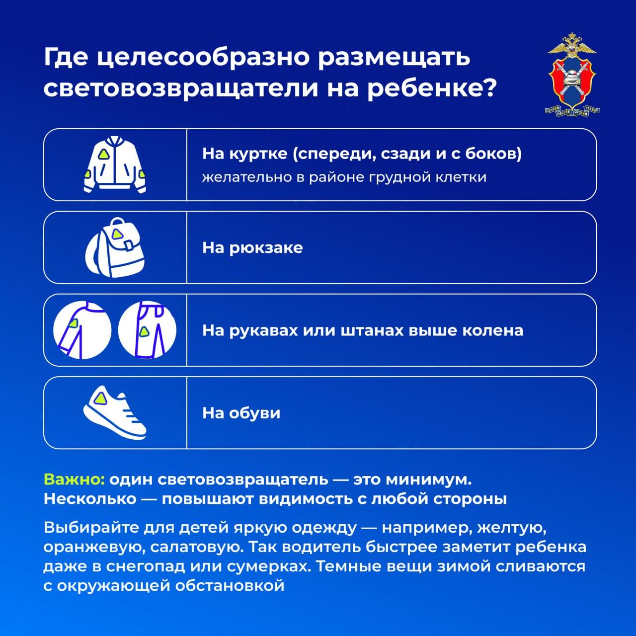 Пешеходу важно быть заметным в любое время суток. Для этого рекомендуем использовать световозвращающие элементы, которые дают водителю возможность вовремя увидеть пешехода, снизить скорость и остановиться.