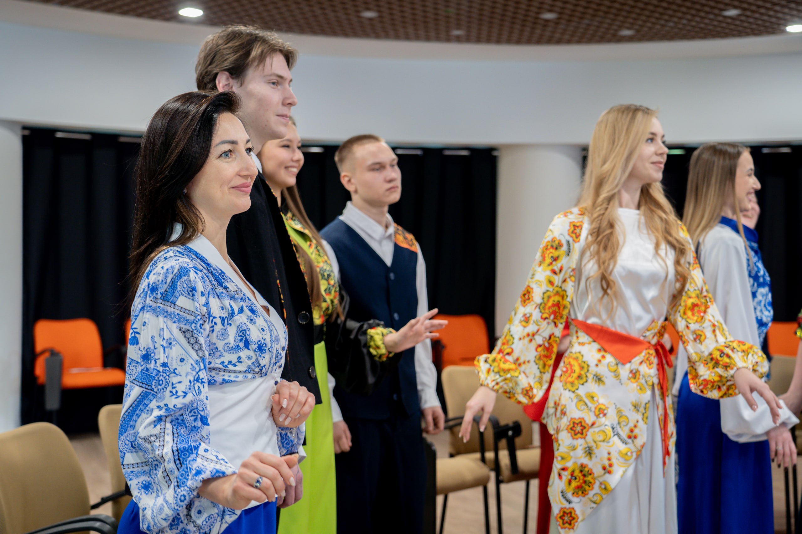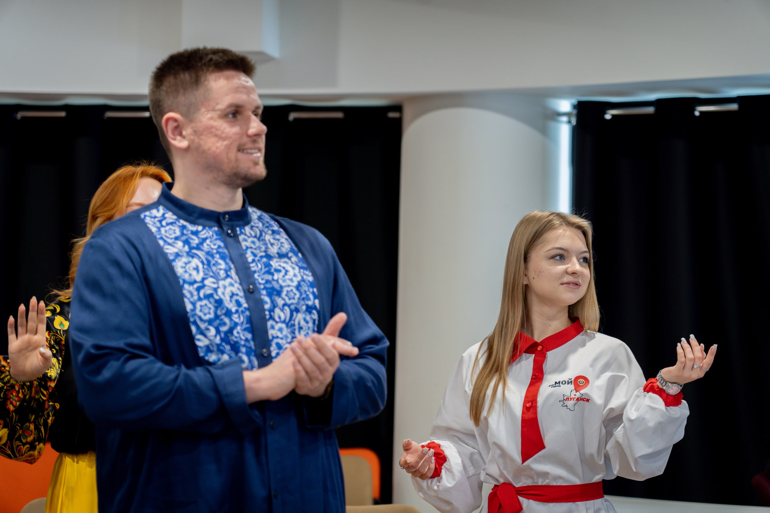 Активисты из ЛНР на базе «Дома Знаний» присоединились к телемосту в костюмах из коллекции женской одежды «Русский стиль» студии дизайнерской одежды «Сабина Эксклюзив»