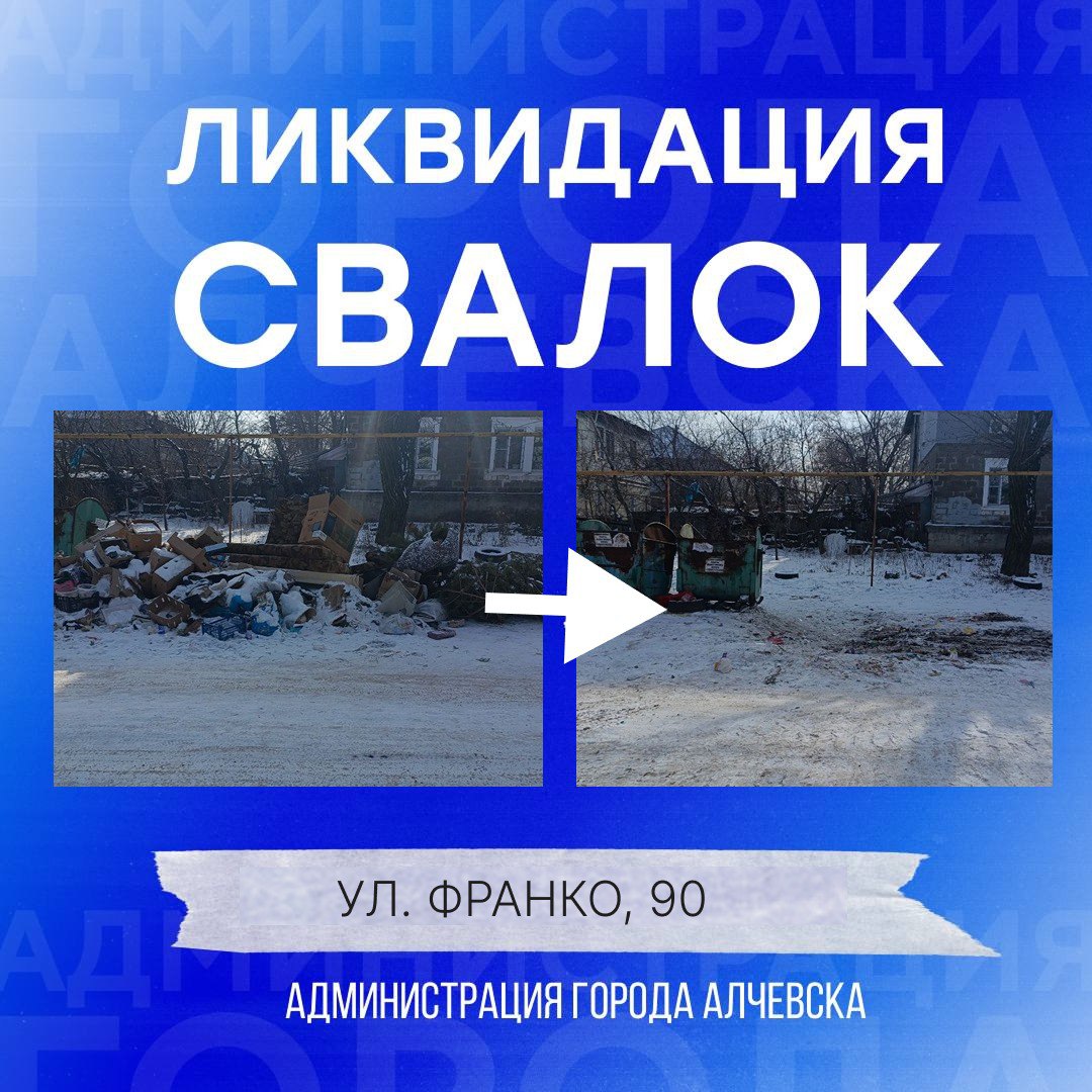 Работниками МУП «Экотранссервис города Алчевска ЛНР» и МУП «Служба дорожного хозяйства и благоустройства города Алчевска ЛНР» ежедневно на территории города выполняется вывоз твердых коммунальных отходов и уборка свалок.