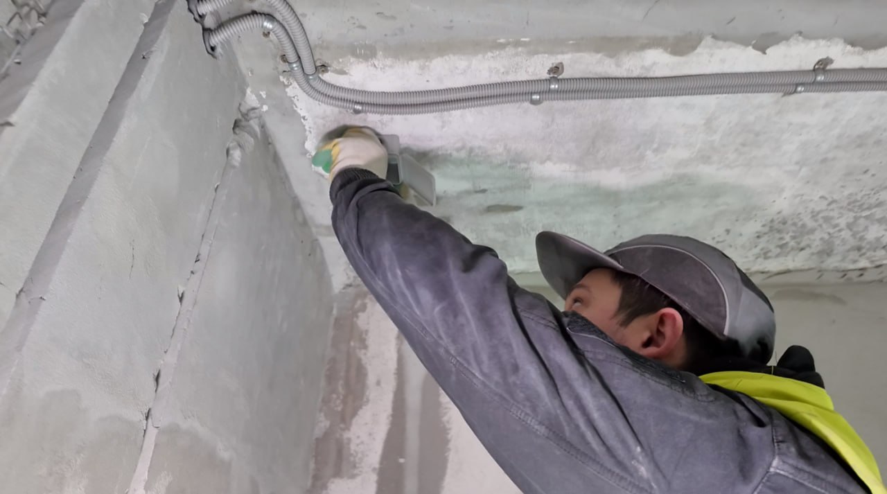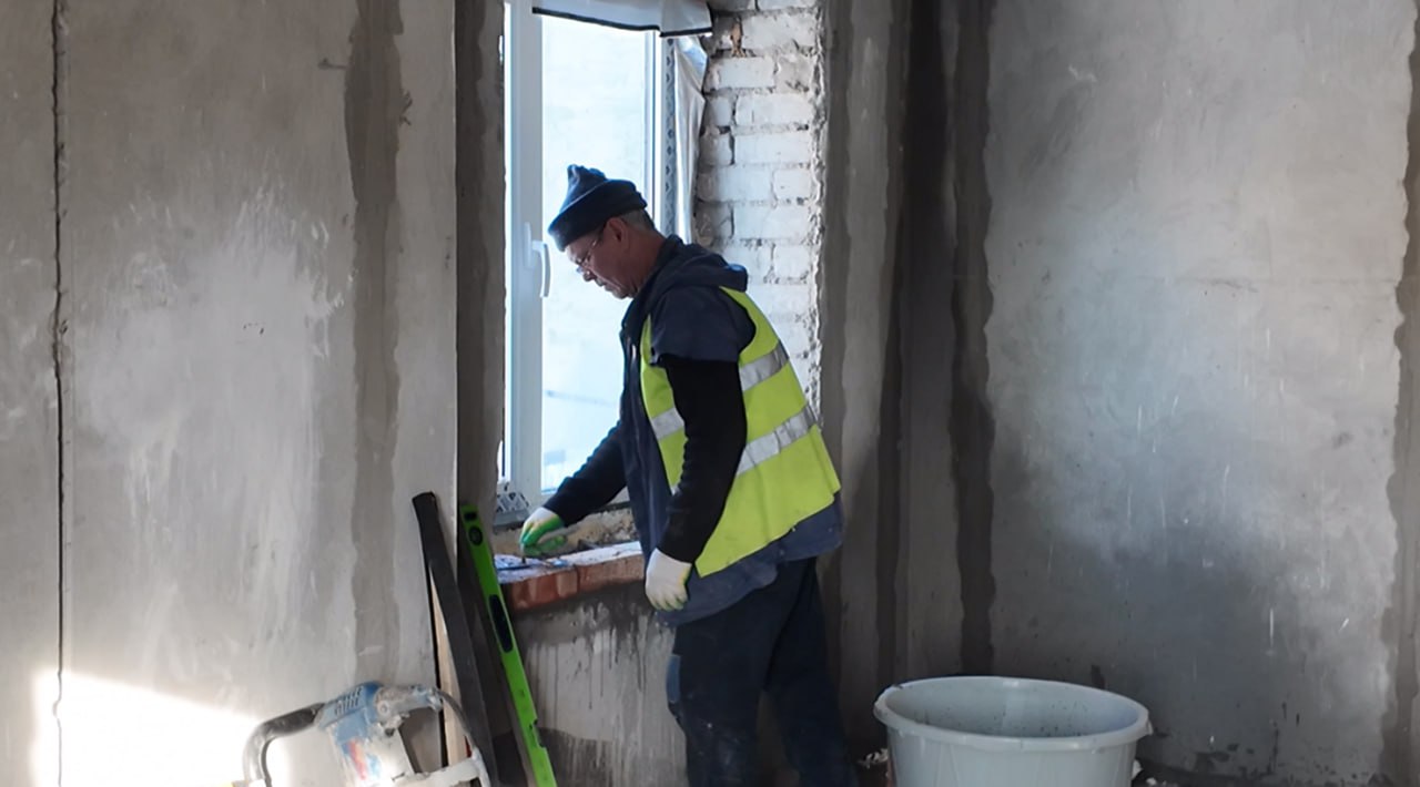 На втором этаже Краснодонского ЗАГСа (административные помещения) завершили работы по заливке пола, заменили все окна, сейчас идёт укладка кирпича под подоконники, работают электромонтажники, слаботочники. На улице продолжают вязать каркасы для лестниц и для центрального входа. После того, как морозы спадут, строители приступят к заливке бетона.