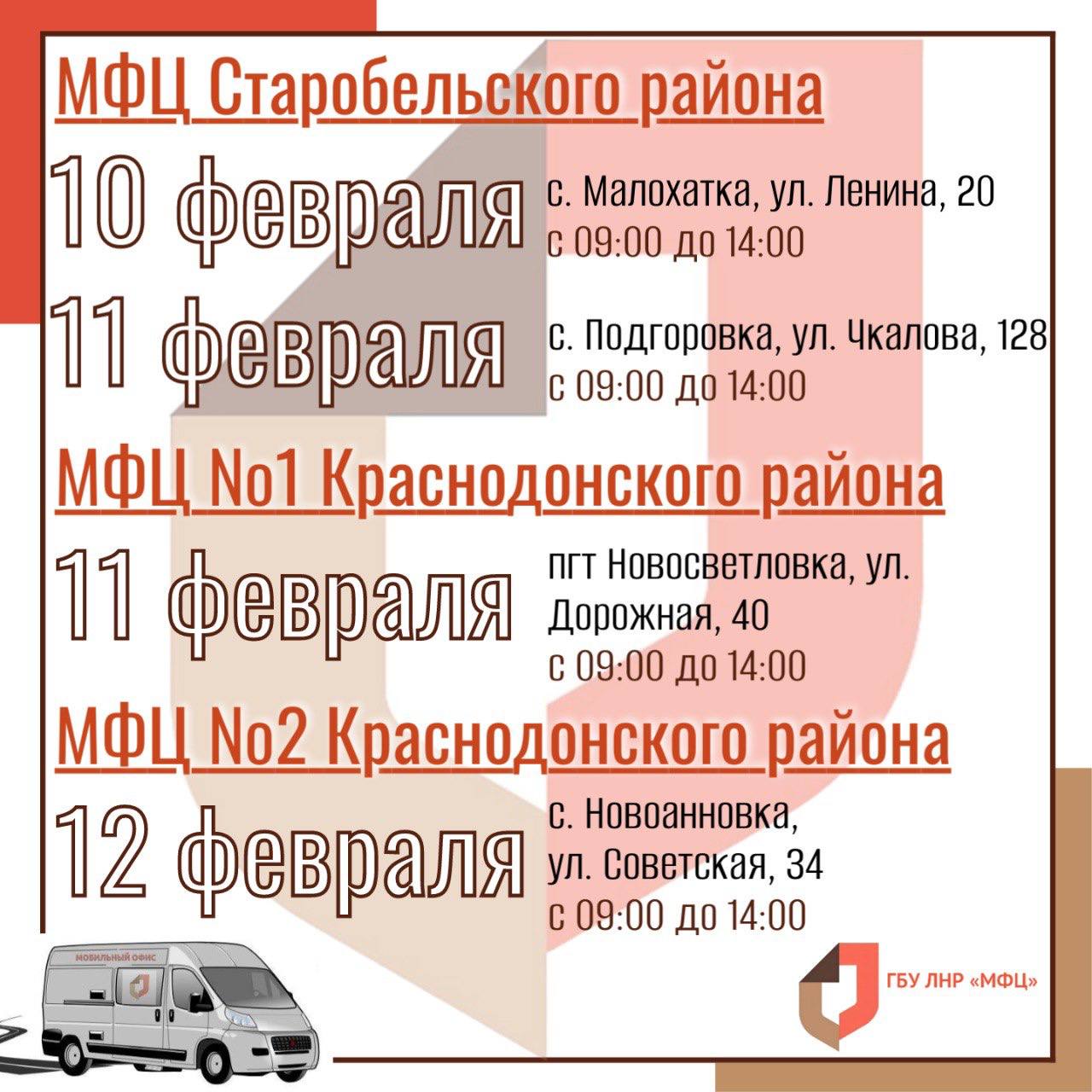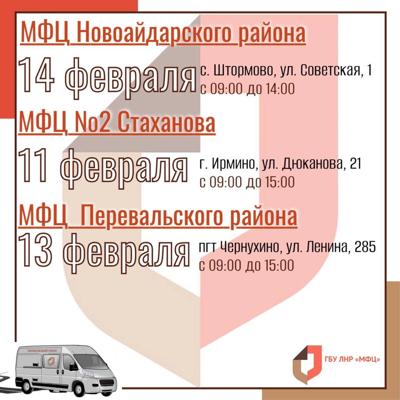 Ознакомиться с полным графиком работы мобильного офиса на февраль 2026 года можно на сайте МФЦ ЛНР.