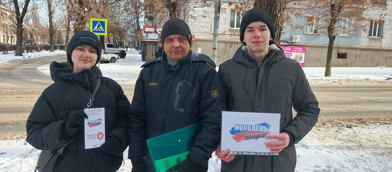 Сотрудники библиотеки-филиала №2 МБУ «Центральная библиотека города Алчевска» провели на улицах города профилактическую акцию «Молодёжь против терроризма и экстремизма» в рамках программы «Мы в праве знать» среди молодёжи города. Акция направлена на формирование понимания проблемы экстремизма и терроризма в молодёжной среде, выявление факторов риска и обсуждение стратегий их минимизации.
