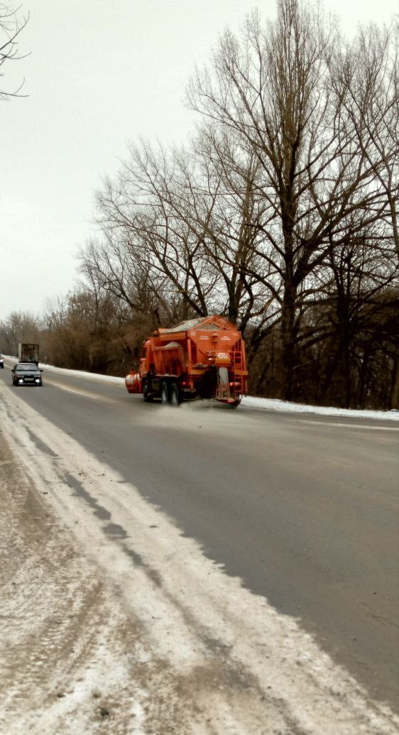 С самого утра дорожники посыпают дороги противоскользящим материалом по городам Стаханов, Ирмино и Алмазная.