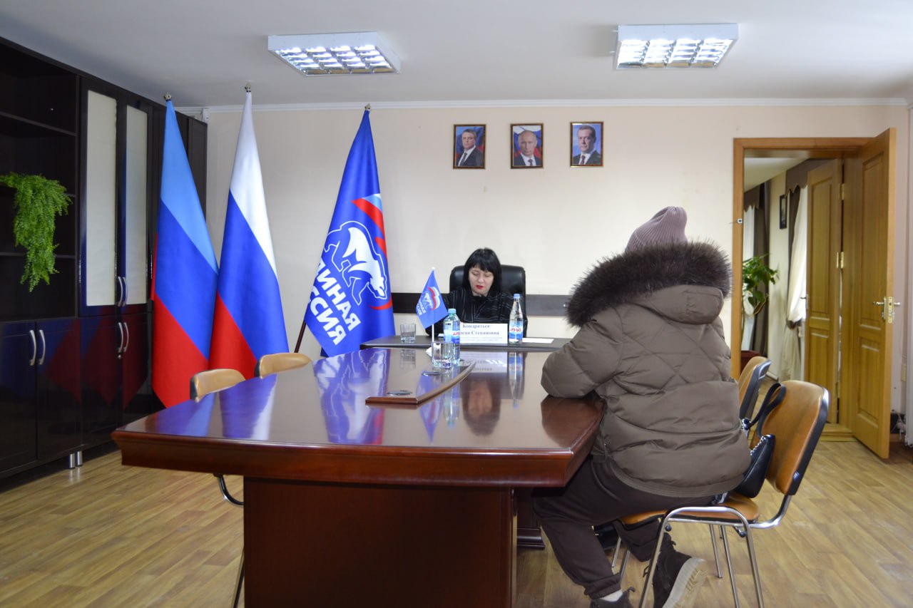 Сегодня состоялся прием граждан в рамках Единого дня приемов участников СВО и членов их семей по вопросам, связанным с получением выплат, который провела начальник отделения социального и пенсионного обеспечения военного комиссариата Свердловского района ЛНР Елена Кондратьева.