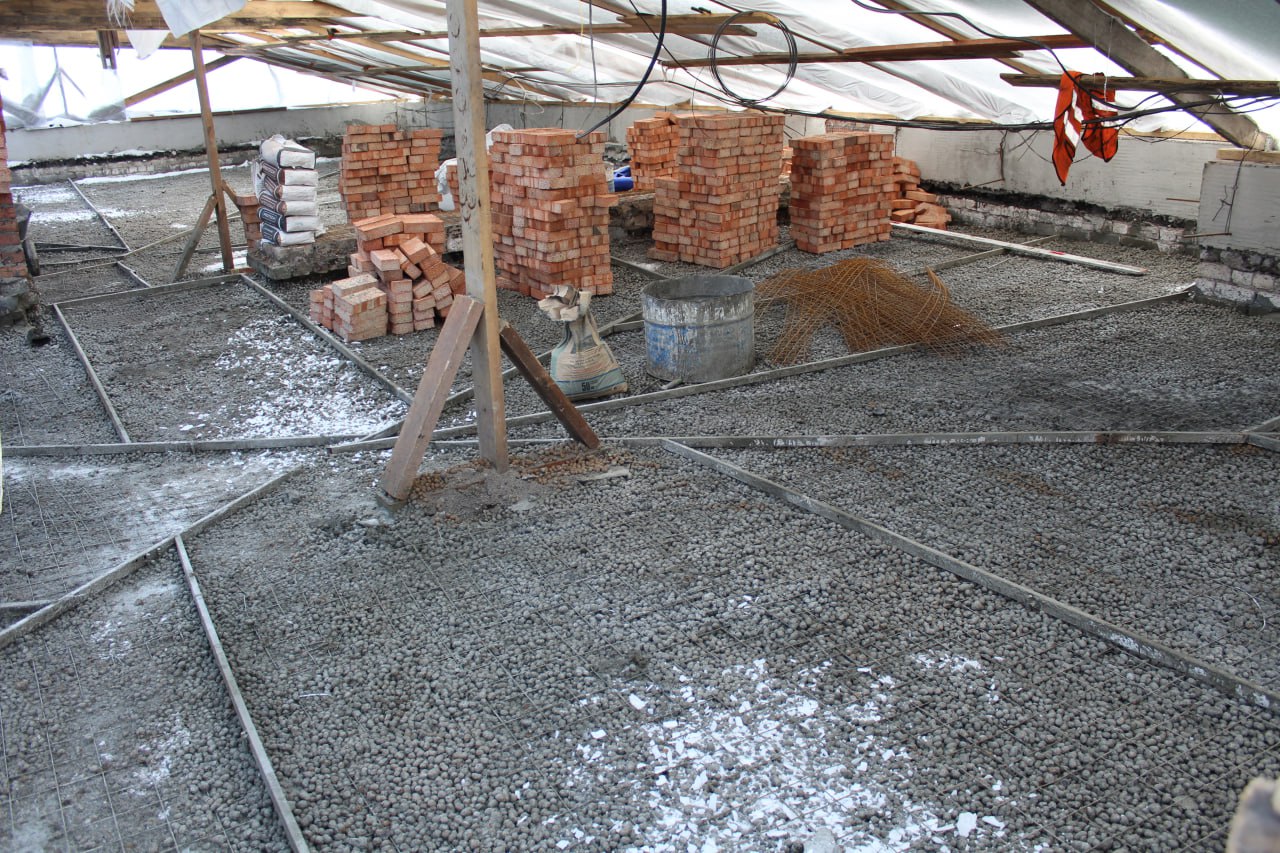 Над первым подъездом выполнены все необходимые работы для заливки стяжки: уложен и пролит керамзит, уложена армировочная сетка, выставлены маяки. В скором времени кровельщики приступят к заливке стяжки.