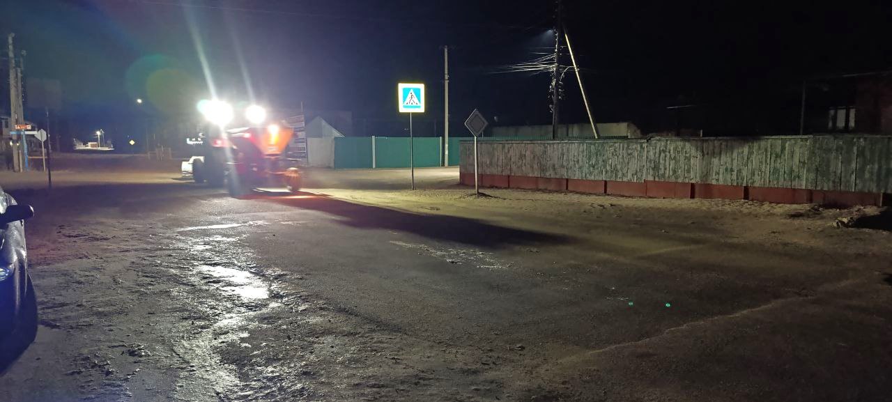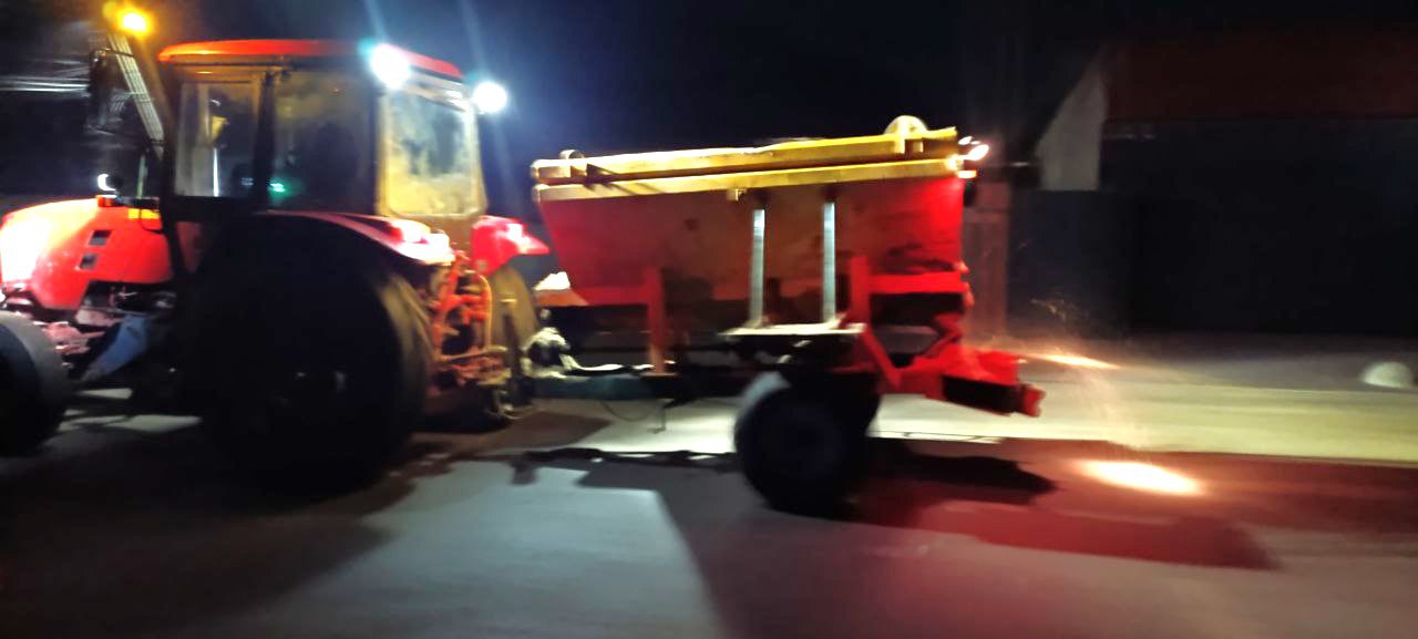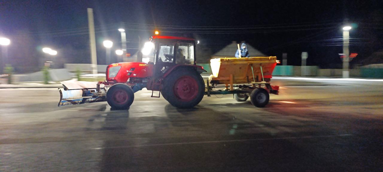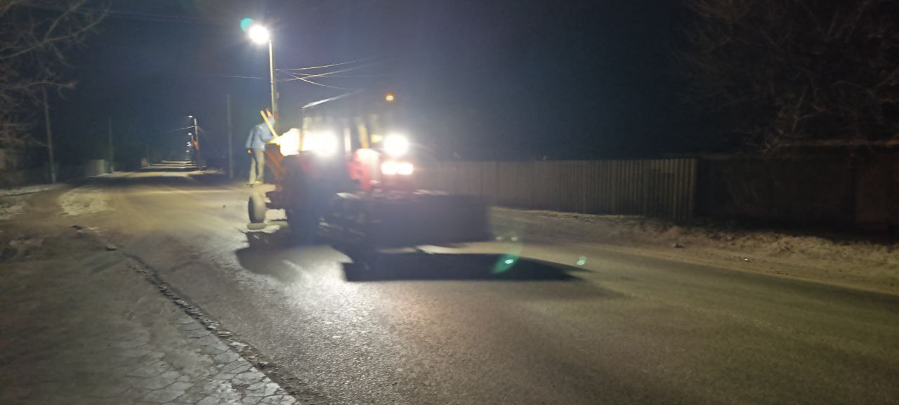 "Коммунальщик" на страже: с раннего утра дороги и тротуары поселка обрабатываются от гололеда