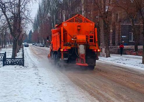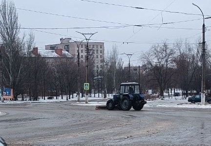 Специалисты МУП «Служба дорожного хозяйства и благоустройства города Алчевска ЛНР» ведут работы по расчистке от снега и наледи проезжих частей и перекрестков, обработке противогололедными материалами.