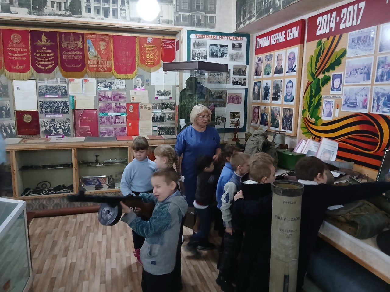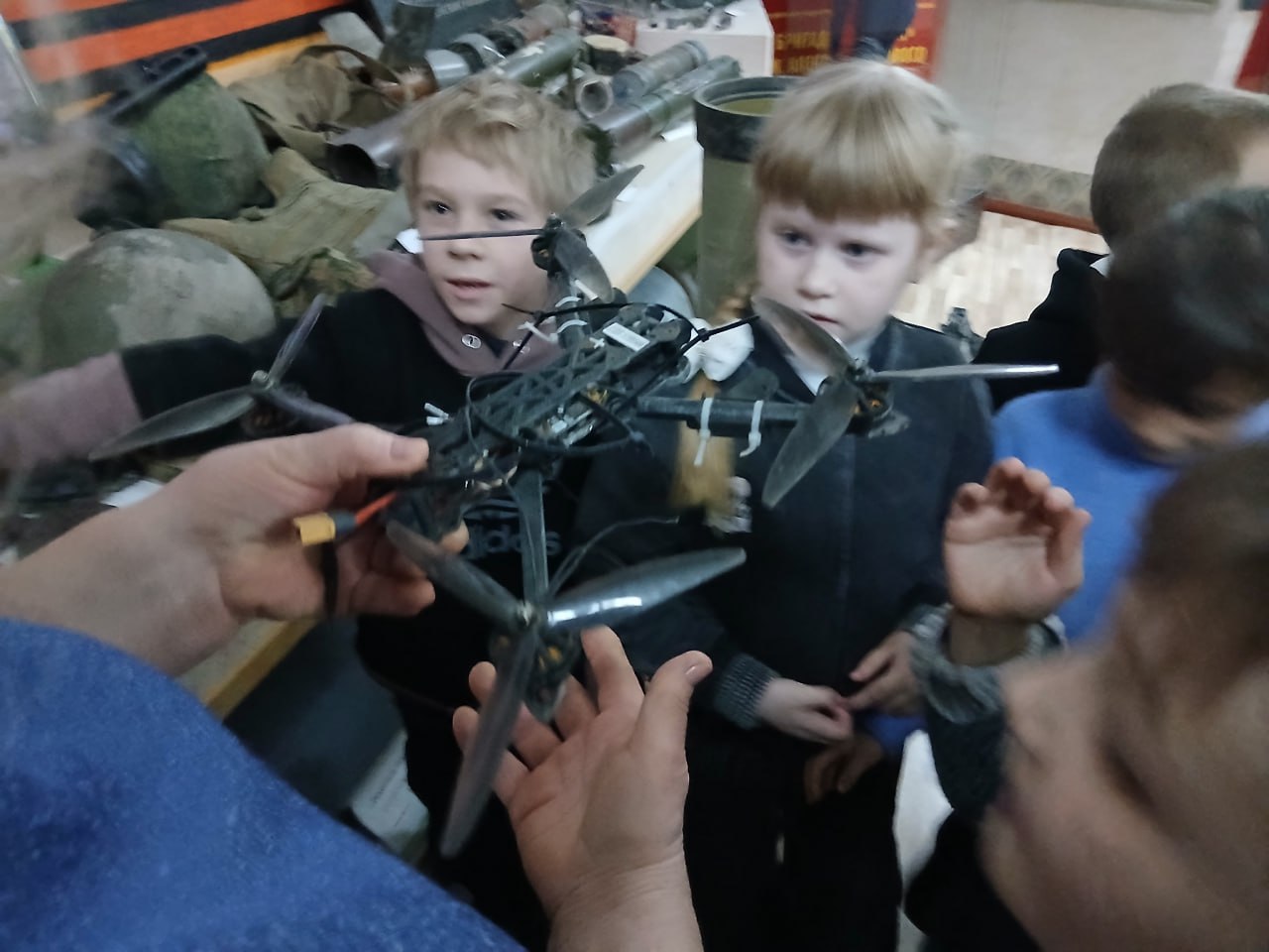 С интересом они познакомились с новым экспонатом музея – радиоуправляемым квадрокоптером, переданным российскими военнослужащими с передовой. Ребята имели возможность посмотреть работы кировских мастеров декоративно-прикладного искусства, посвящённые теме этой экспозиции. Затаив дыхание, дети посмотрели выставку портретной галереи защитников Отечества.