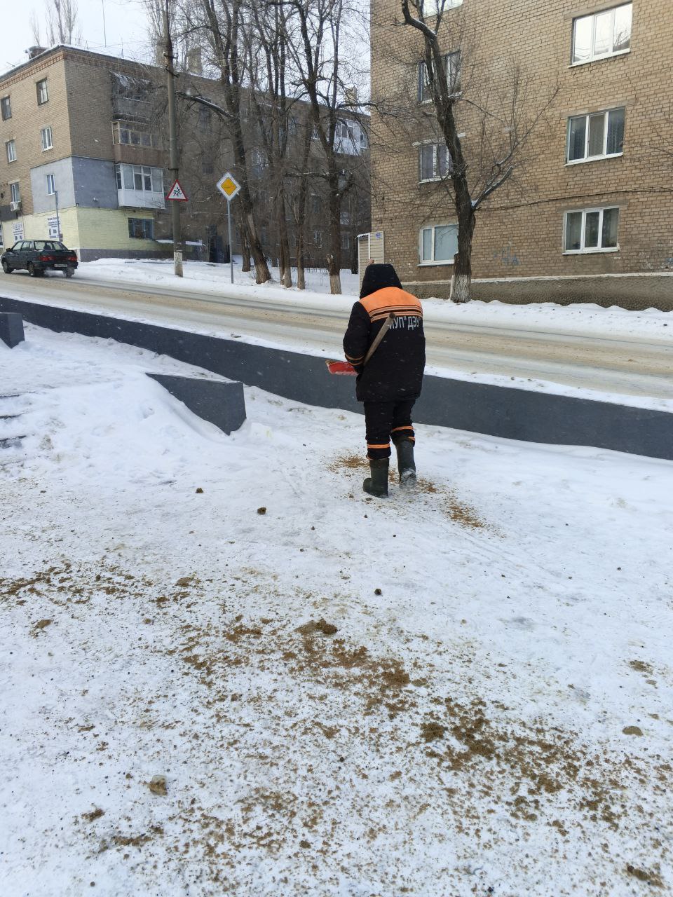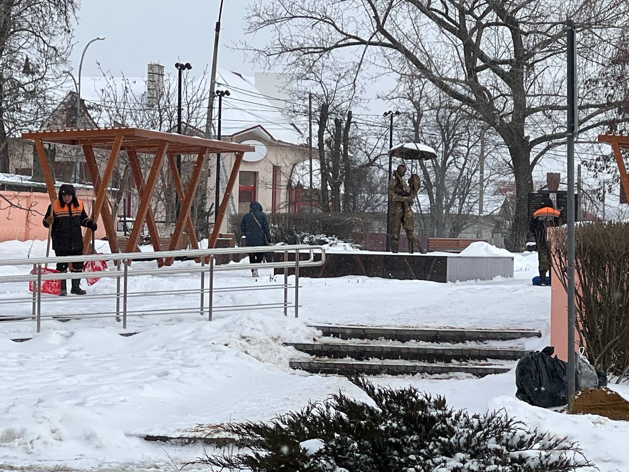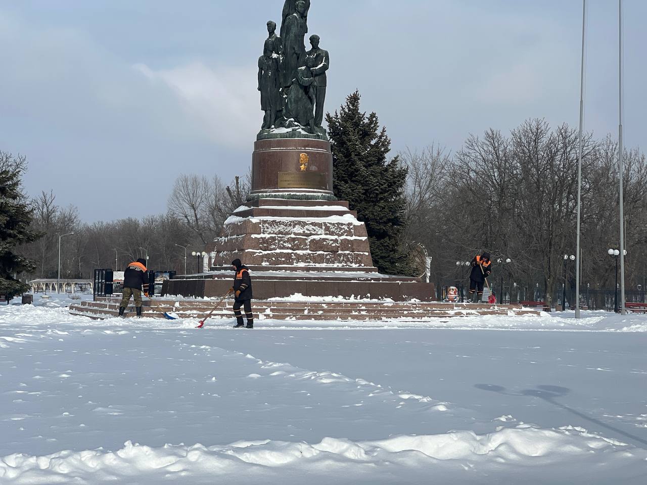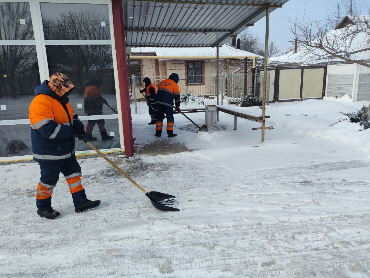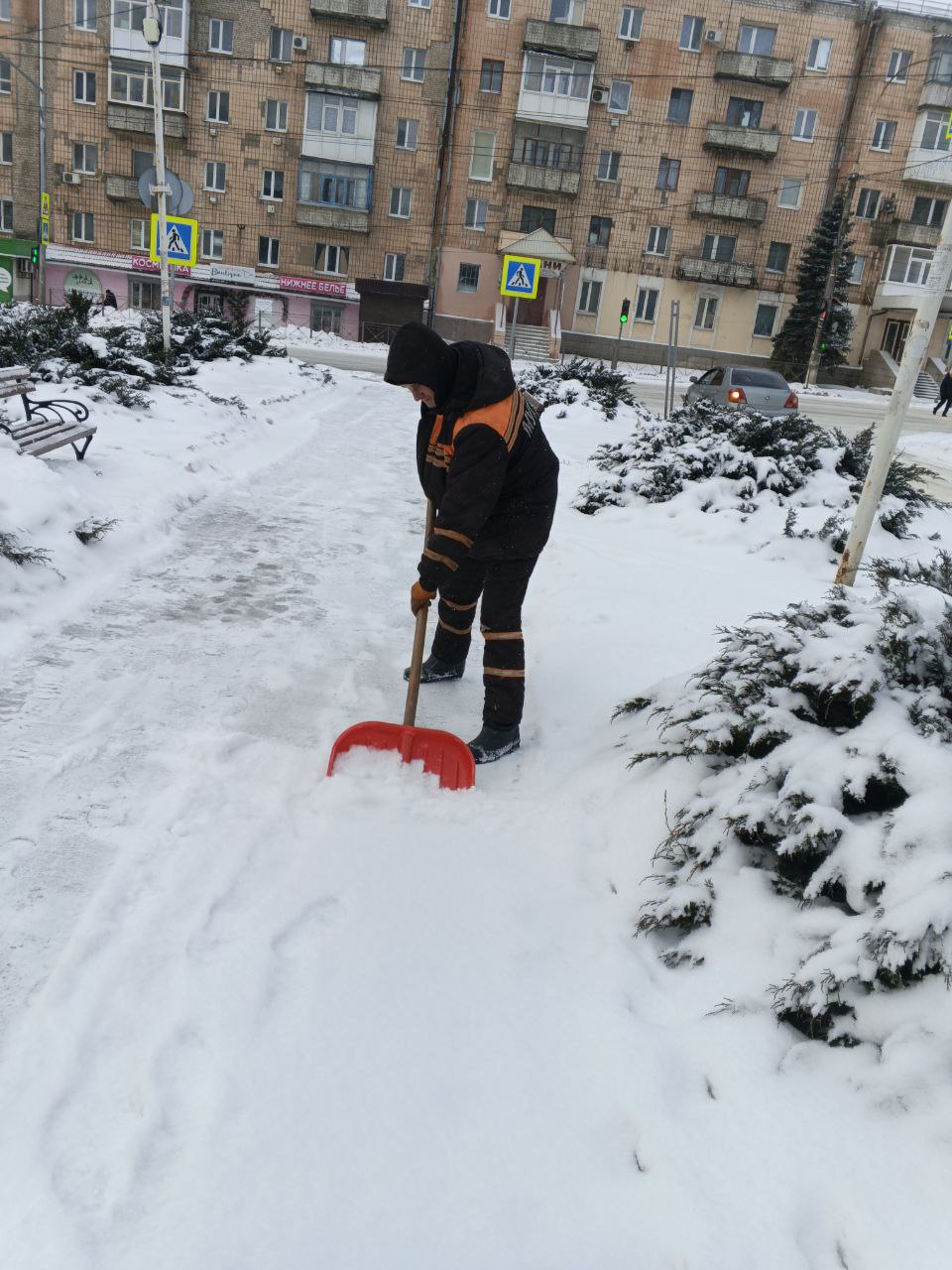 В работе задействована не только коммунальная техника. На площадях, в общественных местах, возле остановок, социальных объектов и на тротуарах работают бригады вручную, чтобы обеспечить безопасный проход для пешеходов и не допустить травматизма.