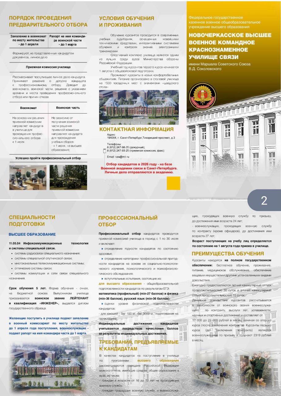 Новочеркасское высшее военное командное краснознаменное училище связи приглашает на учебу