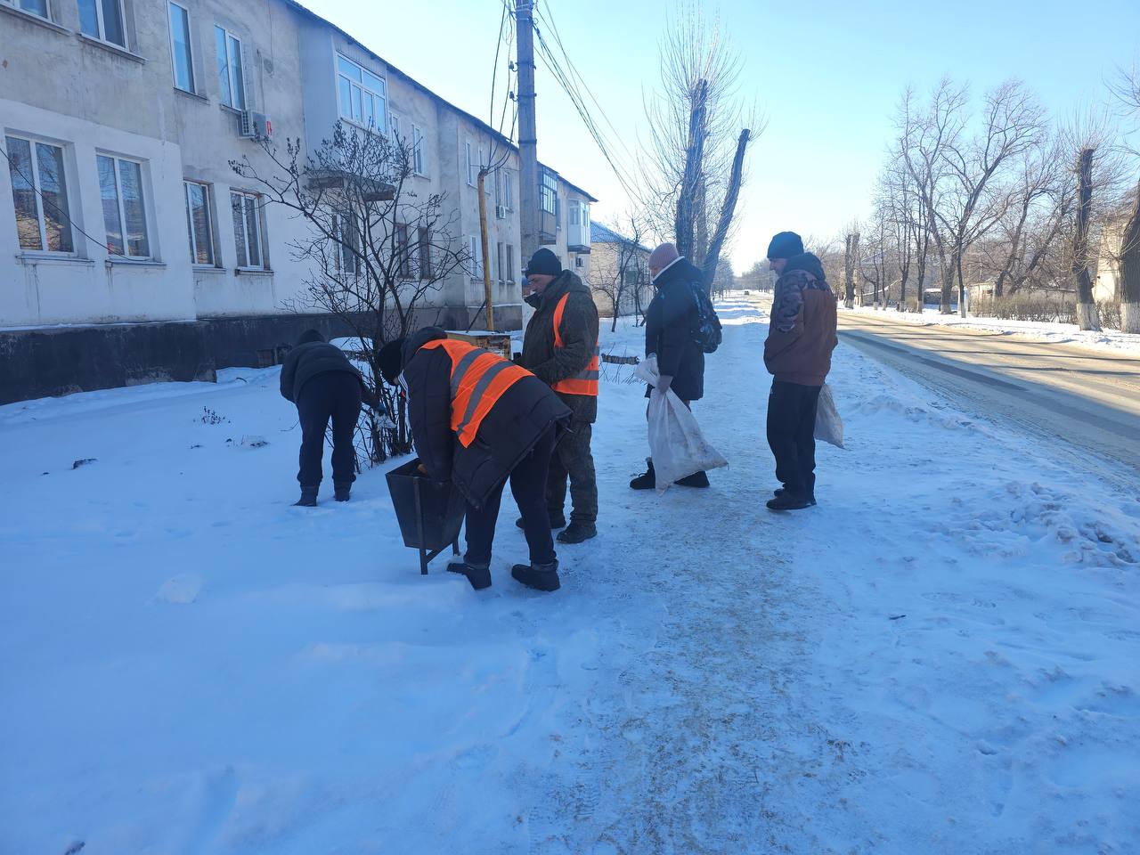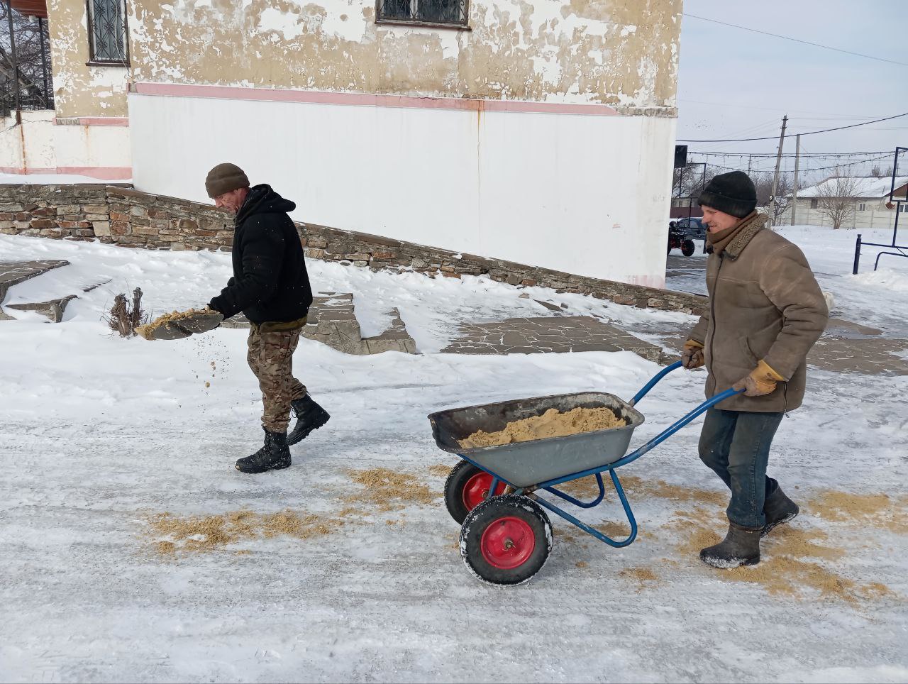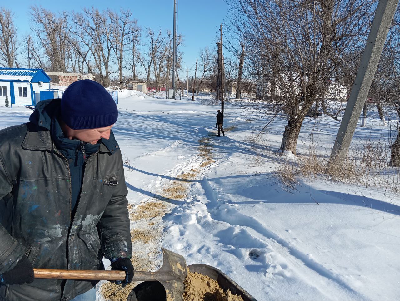 Ведётся посыпка тротуаров песком, который, в отличие от химических реагентов, создает на поверхности тротуара шероховатый слой, который значительно улучшает сцепление подошвы обуви с поверхностью. Это снижает риск падений и травм жителей посёлков.