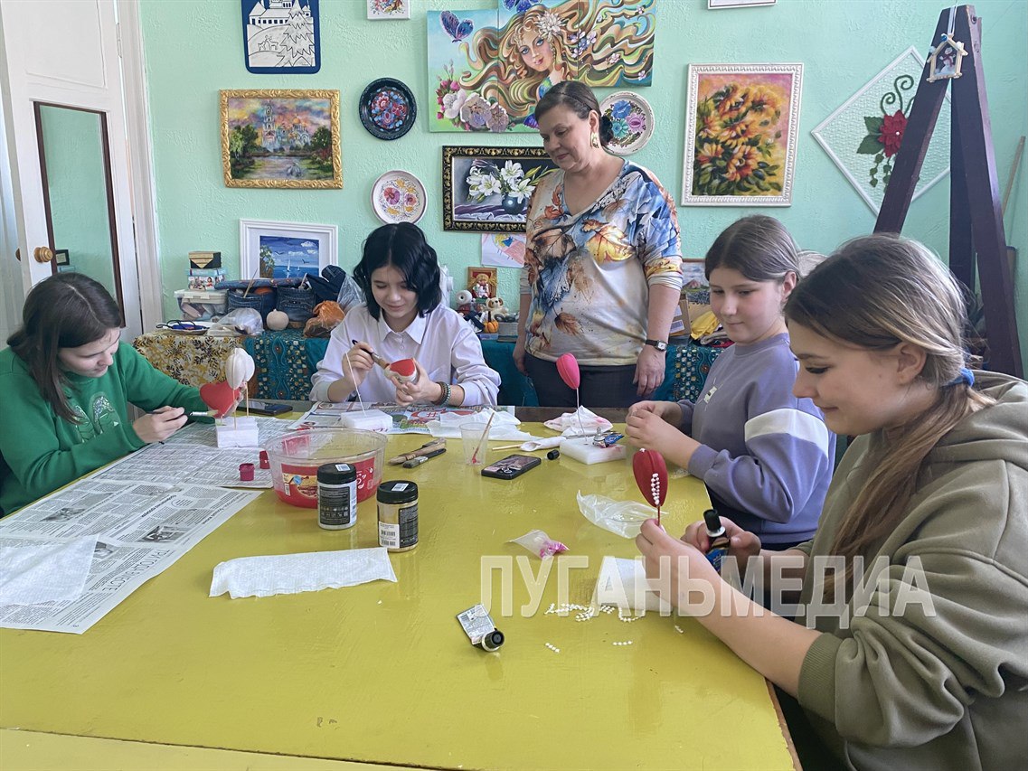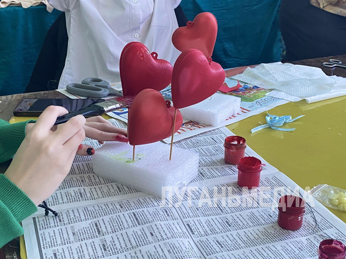 Участницы городского клуба декоративно-прикладного искусства «Светлица» изготовили «хрупкие сердечки» для своих друзей и близких. Они создали рукотворные подарки с помощью прессованной бумаги, клея, гуаши и ленточек с бусинками.