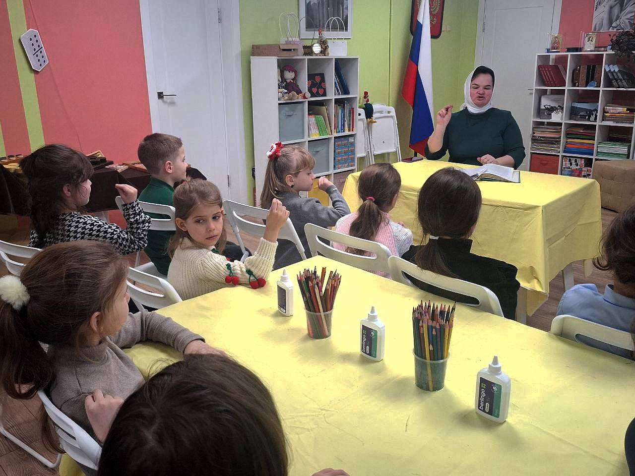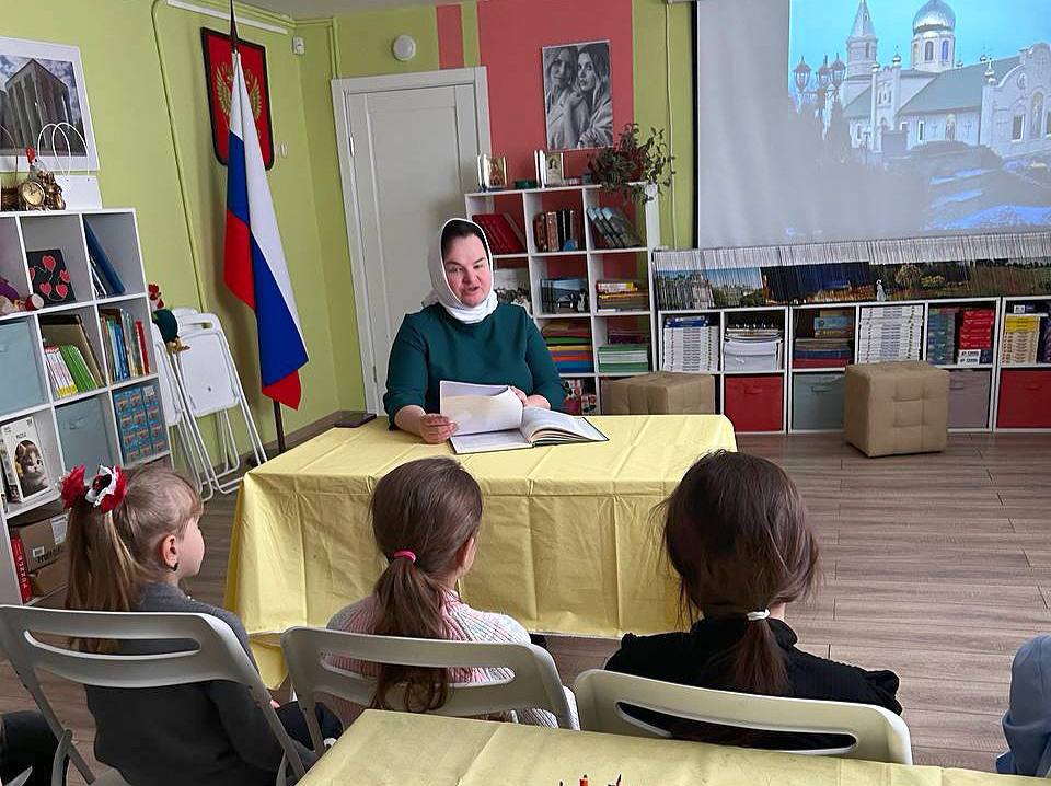 Главной гостьей и рассказчицей стала матушка Наталья из Свято-Николаевского храма. С ее слов дети узнали много нового и интересного. Она рассказала, что такое храм, какие бывают храмы, почему так важно их посещать и как правильно себя вести в святом месте. Это были не сухие правила, а скорее добрые советы, которые помогают почувствовать себя частью чего-то большого и светлого.