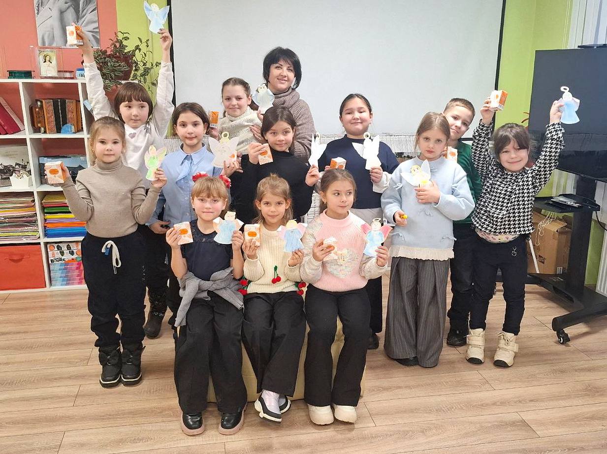 После такого вдохновляющего разговора пришло время для творчества. Ребята вместе со специалистом музейного центра Мариной Матвейчук с удовольствием принялись за дело. Они мастерили символы веры и надежды – маленьких ангелочков. А за активность детвору ждало сладкое угощение.