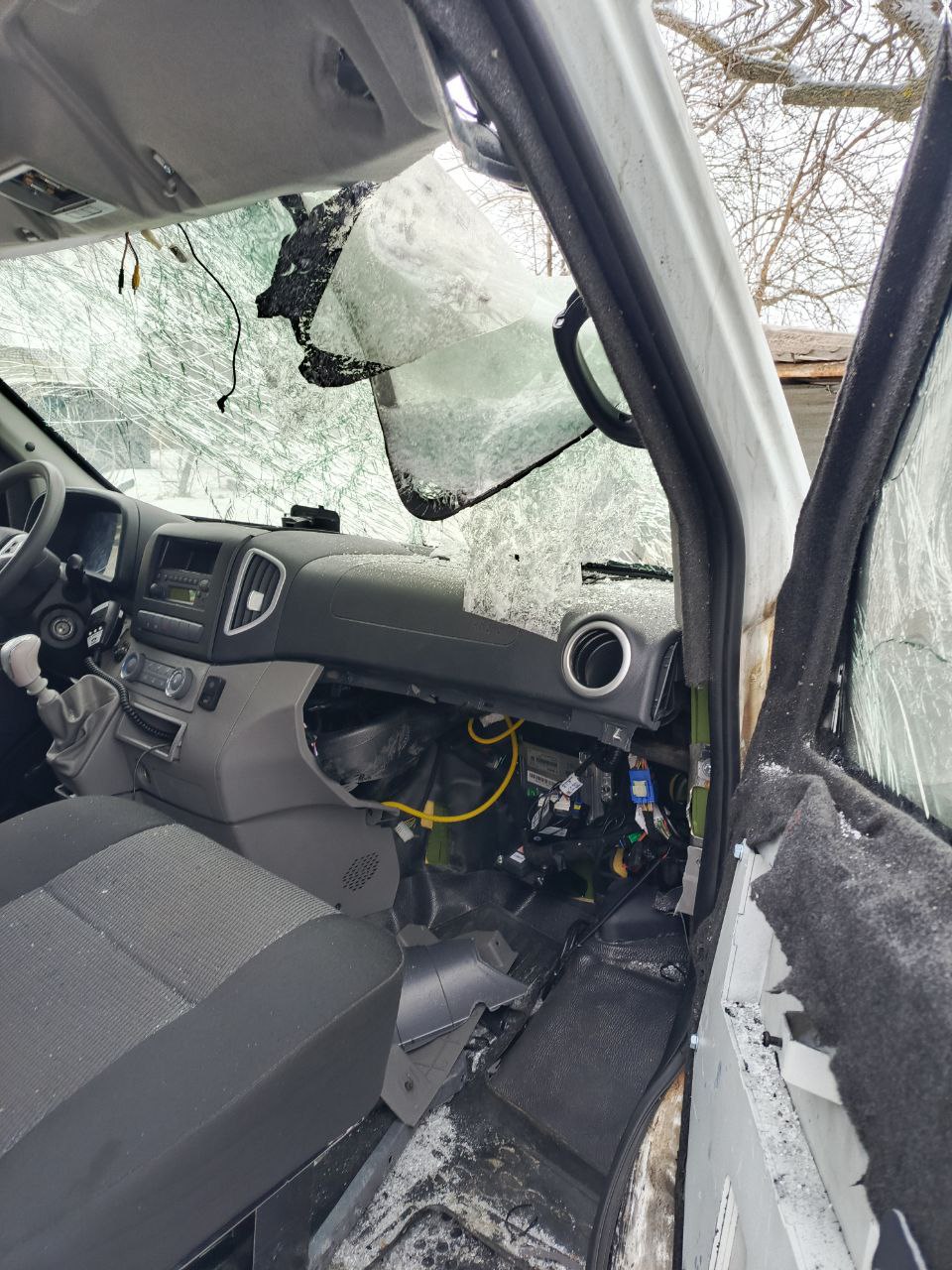 Водитель — состояние удовлетворительное, жалоб нет. Находится на подстанции. Мобильный телефон утрачен при попадании.