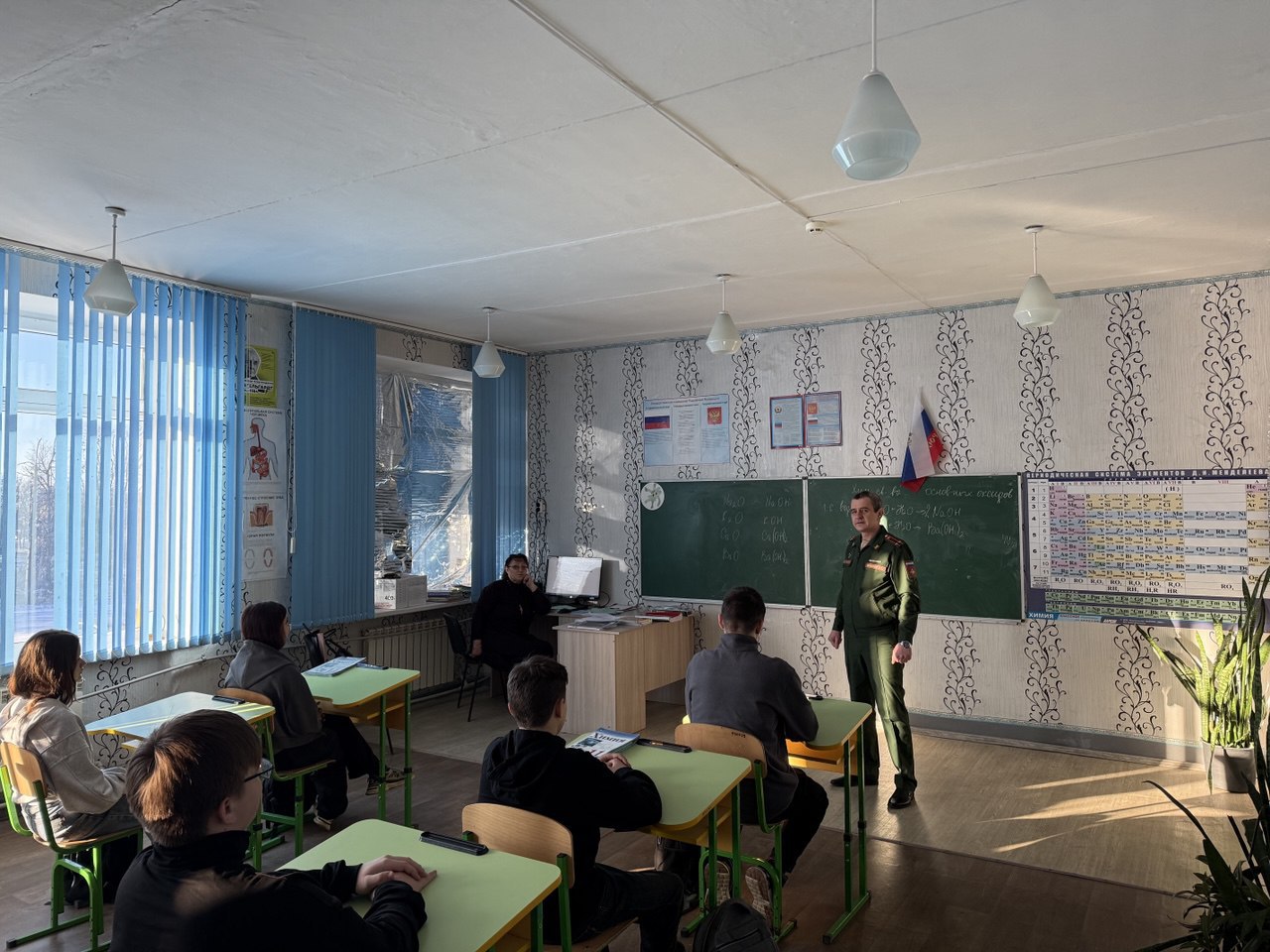 Встреча с учениками старших классов прошла в теплой и доверительной атмосфере. Вячеслав Маданов поделился своим опытом службы, рассказал о важности воинского долга и патриотизма, а также о тех возможностях, которые открывает перед молодыми людьми выбор военной профессии.