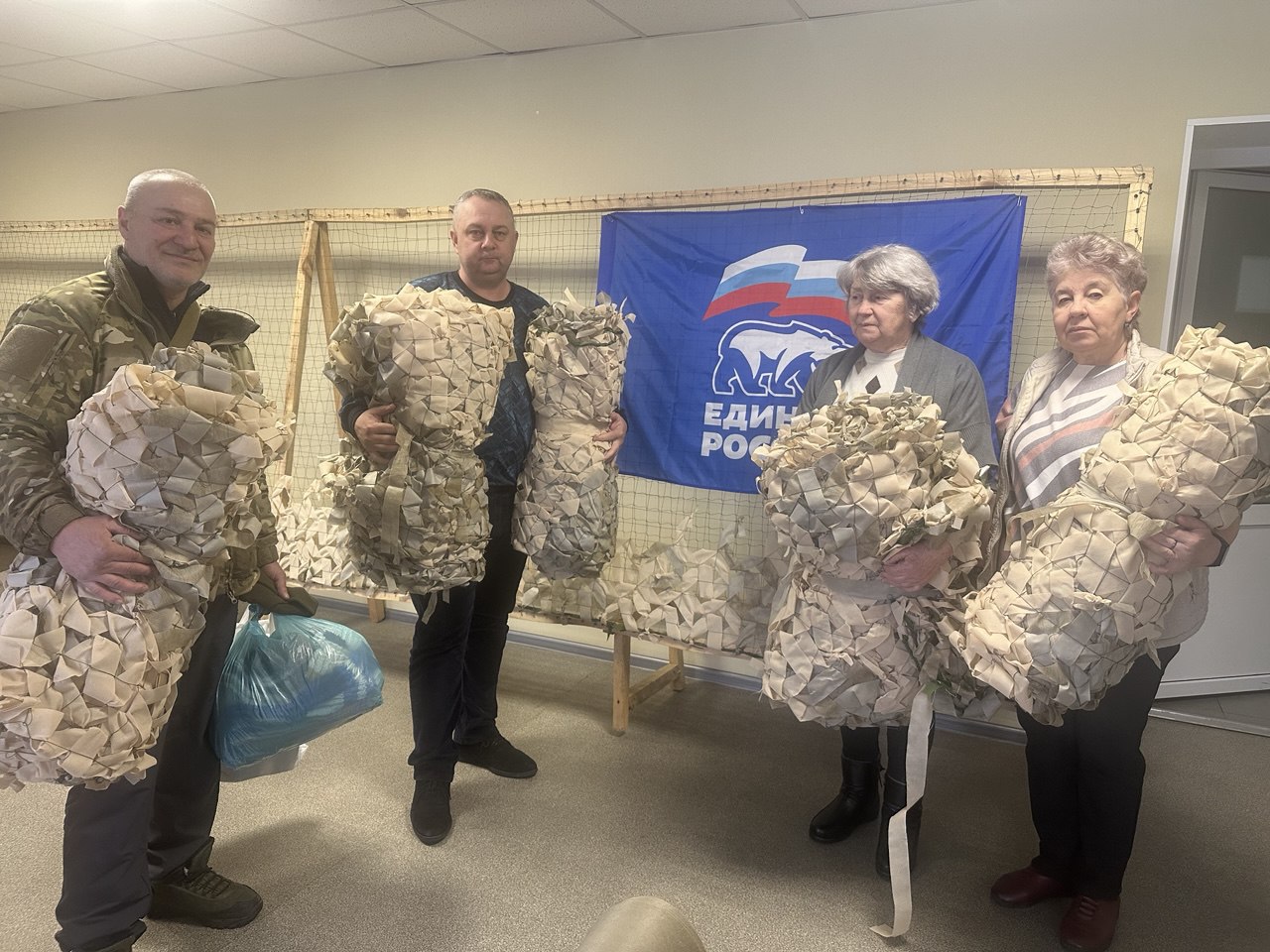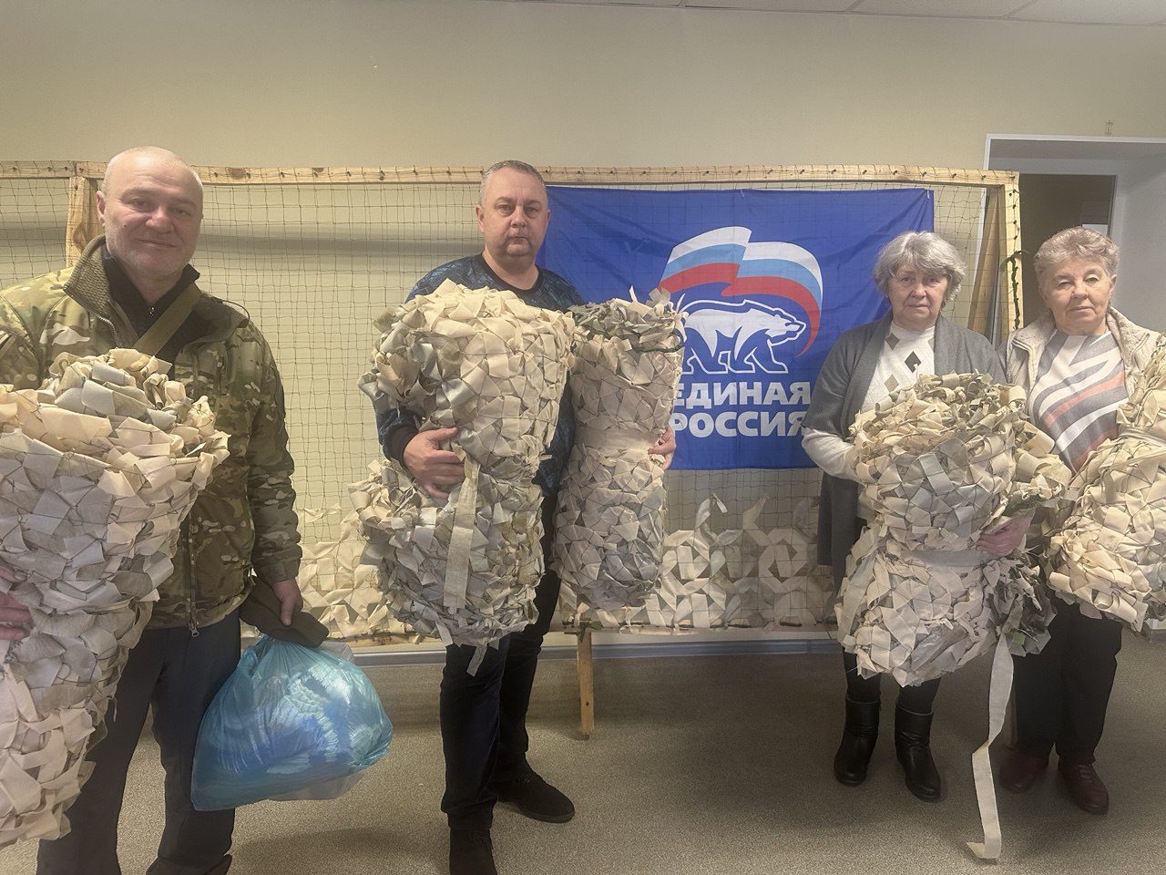 12 января передали очередную партию маскировочных сетей (5 штук!), а также наши рукодельницы связали носки, которые вместе с сетями отправятся военнослужащим.