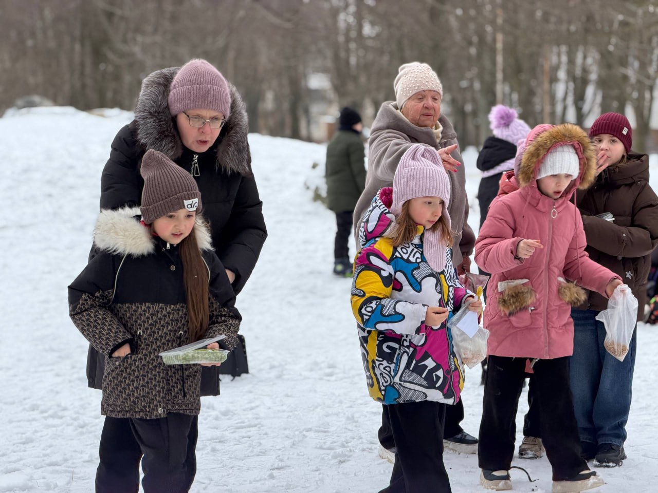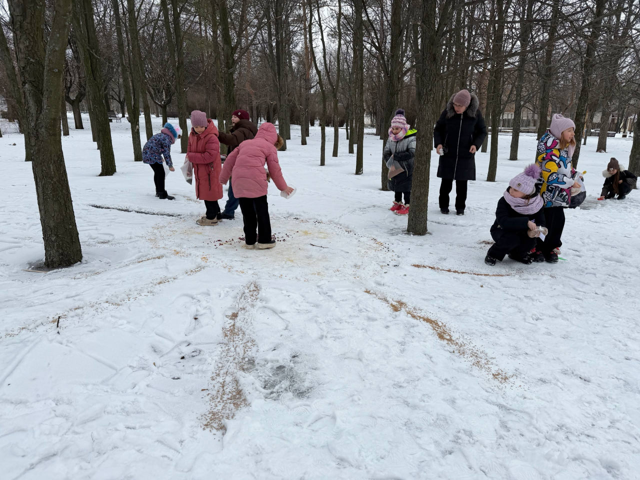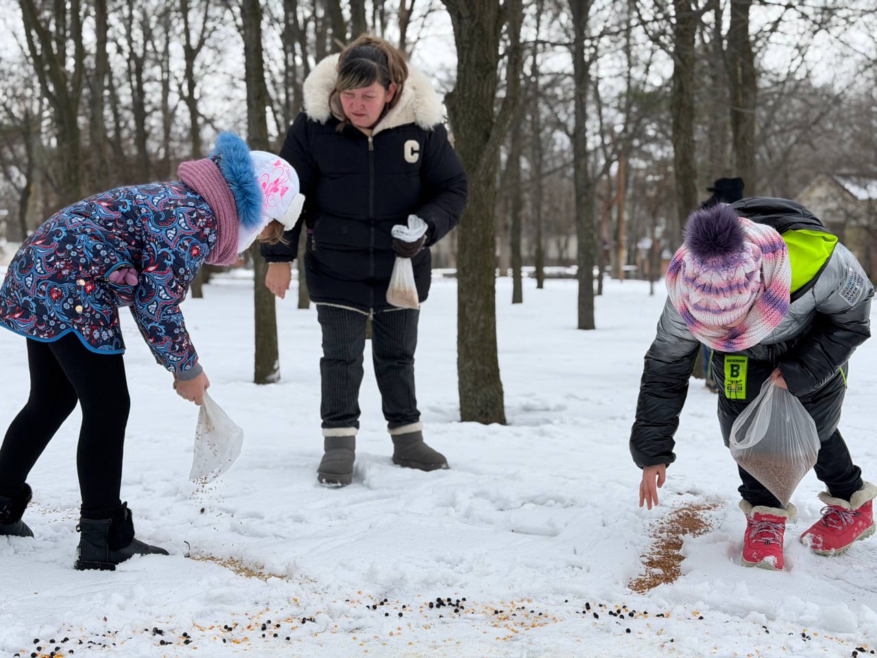 В зимний период, когда птицам, обитающим в парке имени Чихачева, трудно найти корм из-за снега и льда, ребята решили прийти им на помощь.