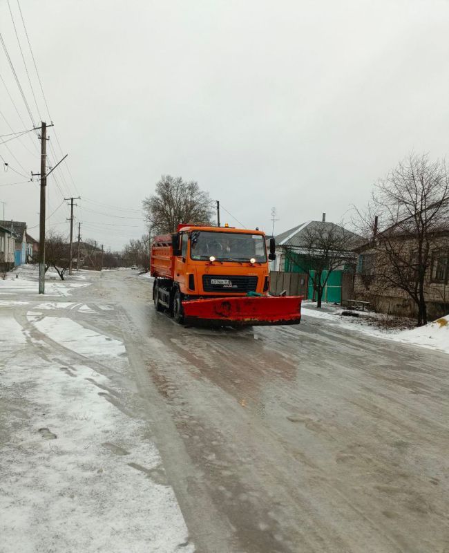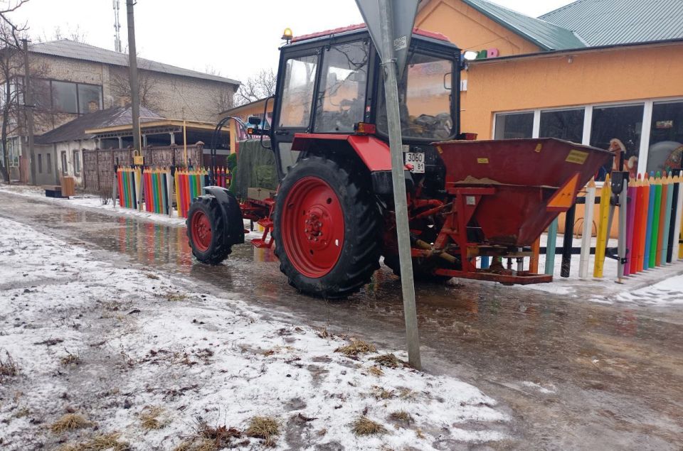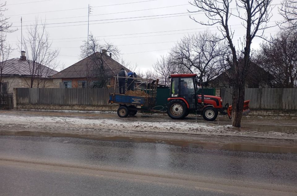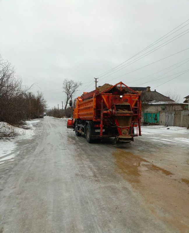 Специалисты оперативно проводят посыпку дорог и тротуаров противогололедными материалами и следят за состоянием проезжей части.
