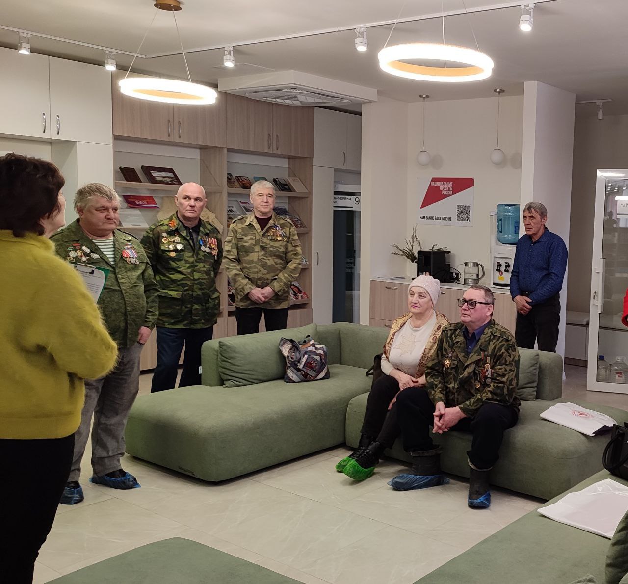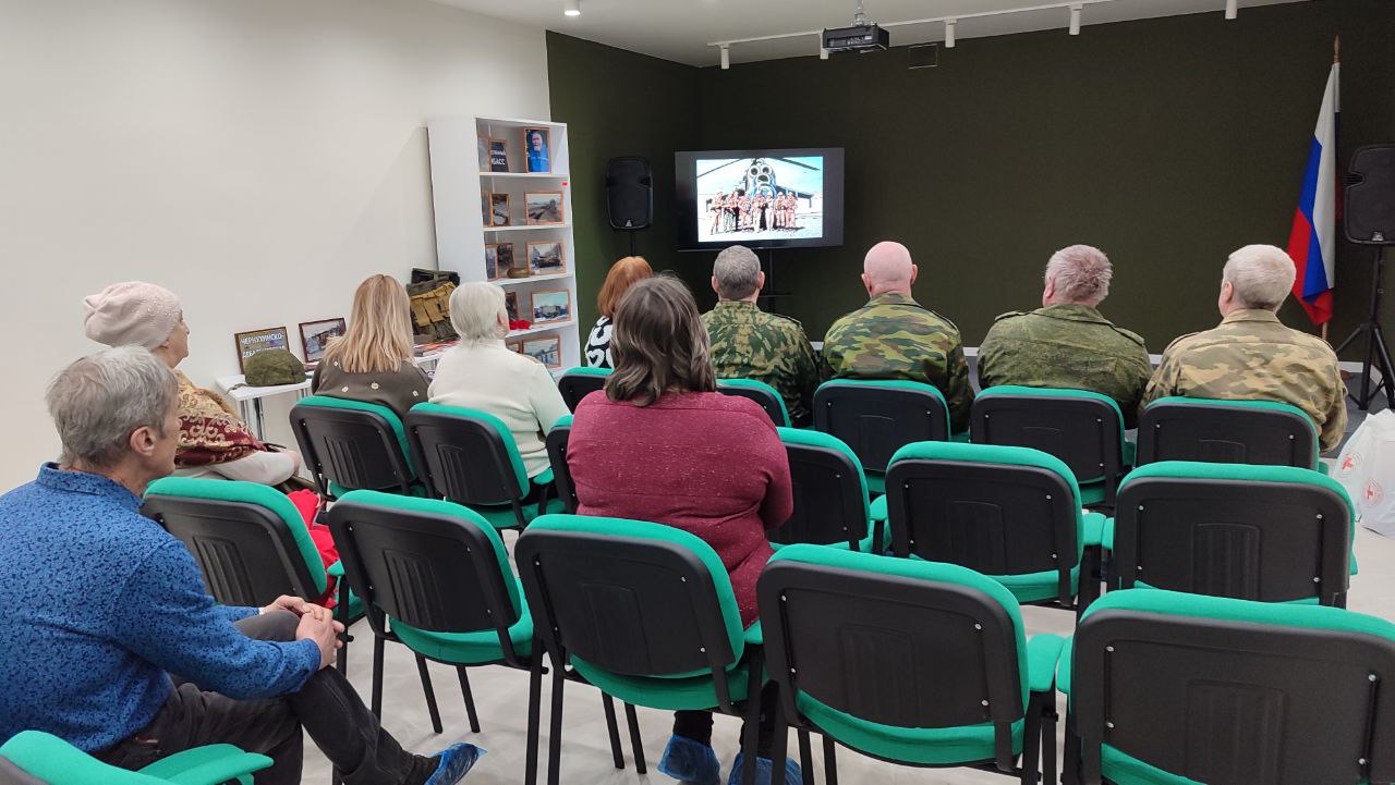 Сотрудники библиотеки тепло встретили гостей, провели экскурсию по современному пространству «Библиопортала». Пригласили присутствующих в событийный зал и провели час – памяти «Их обжигала пламенем война».