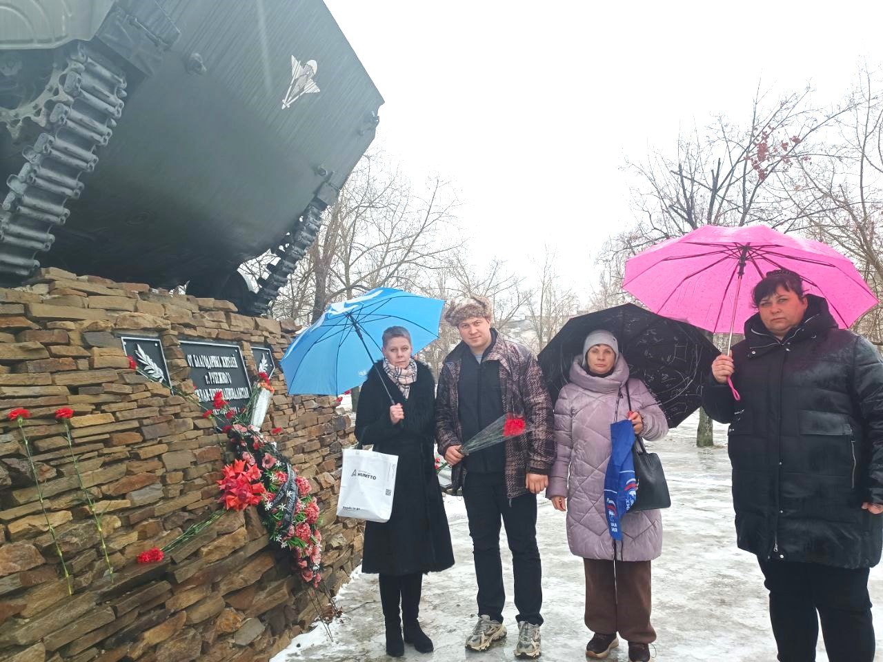 Участники церемонии почтили память павших минутой молчания, после чего возложили к подножию памятника алые гвоздики. Красные цветы стали символом крови, пролитой солдатами.
