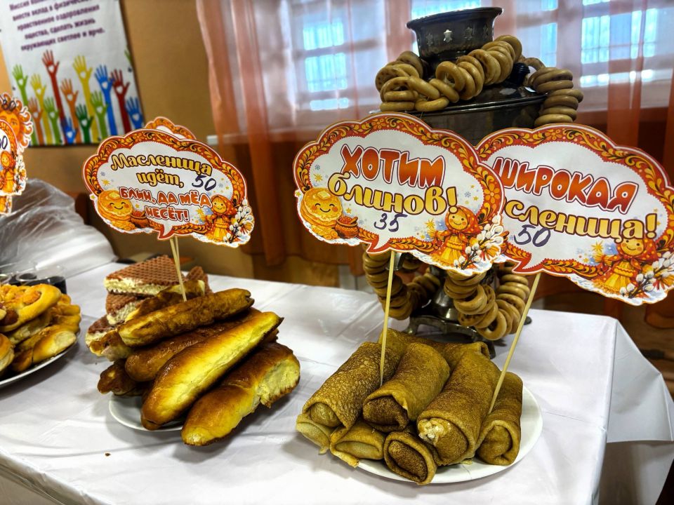 Столы ломились от угощений: румяные блины с самыми разными начинками, домашняя выпечка, ароматный чай.