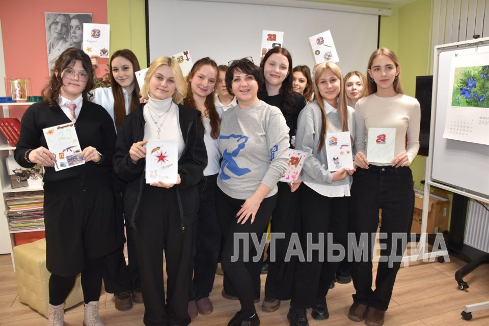 В Детском центре Музея истории города Первомайска секретарь первичного отделения №4 Первомайского местного отделения Партии «Единая Россия» Марина Матвейчук провела для старшеклассников Первомайской специализированной средней школы № 6 мастер-класс по изготовлению открыток к Дню защитника Отечества.