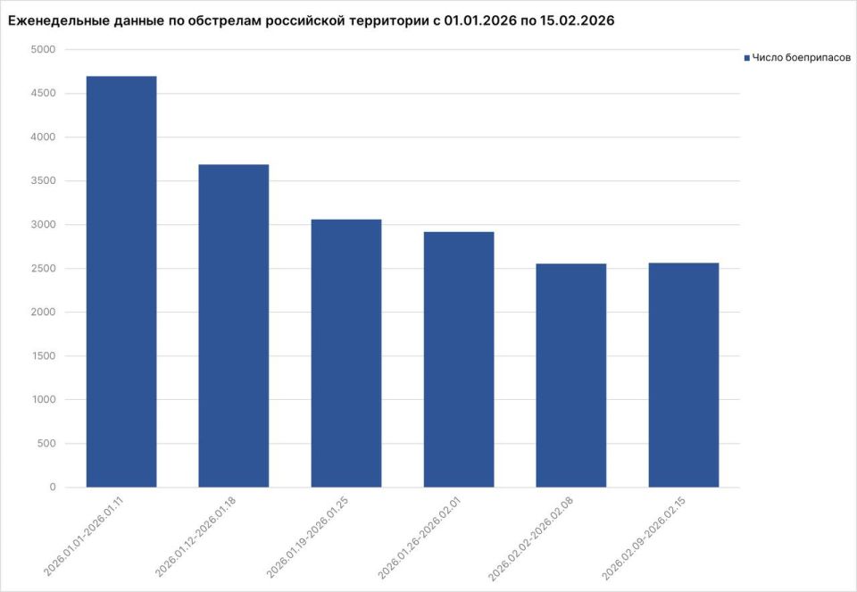 За неделю с 9 по 15 февраля от обстрелов украинских нацистов пострадали 147 мирных жителей: ранены 126 человек, в том числе 6 несовершеннолетних, погиб 21 человек. Всего же по гражданским объектам на российской территории ВСУ выпустили не менее 2 563 боеприпасов.