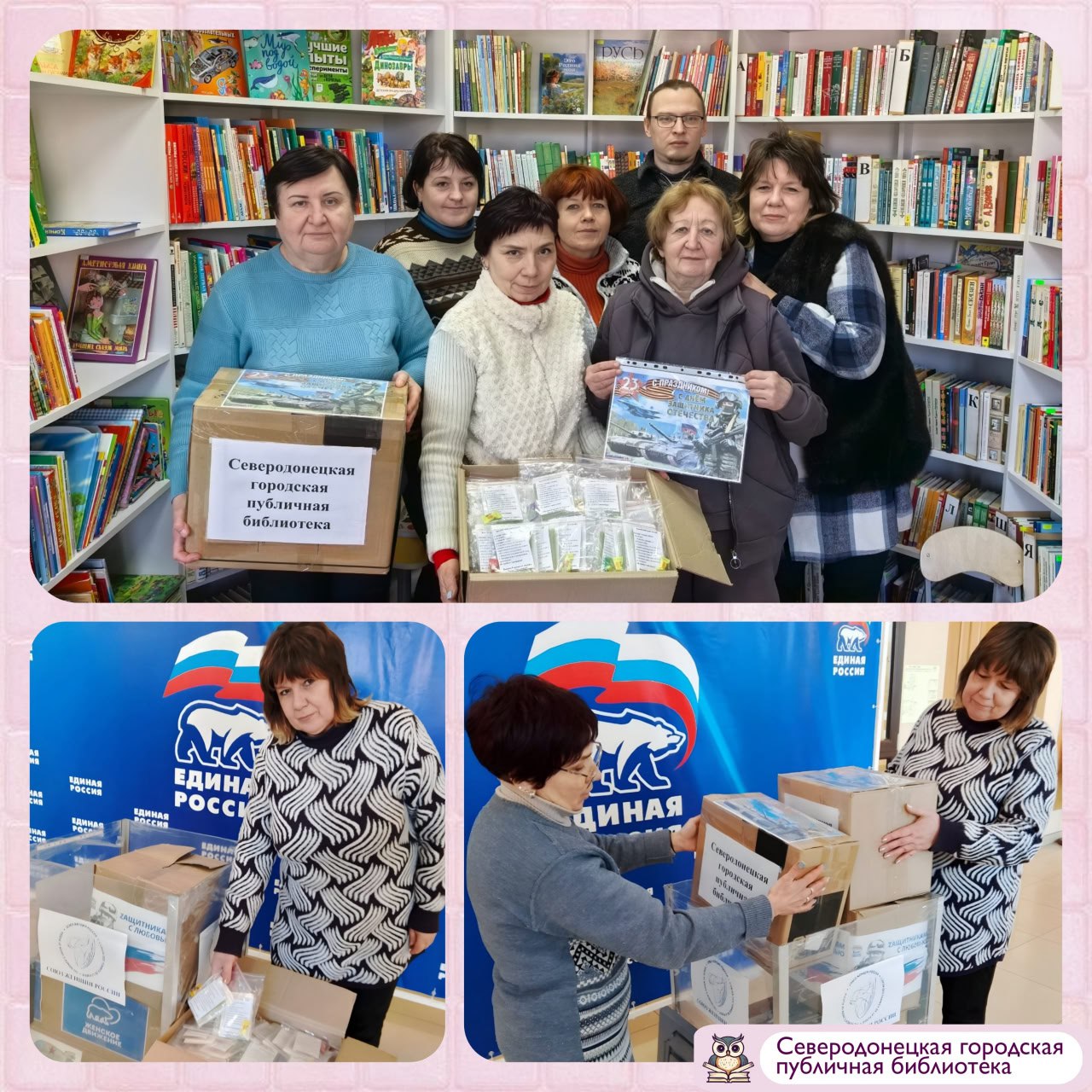 В преддверии Дня защитника Отечества сотрудники Администрации городского округа город Северодонецк, депутат Совета городского округа Олег Лядовский, секретарь первичного отделения партии «ЕДИНАЯ РОССИЯ» № 4 Юлия Фесенко, сотрудники Северодонецкой городской публичной библиотеки и воспитанники ГБДОУ ЛНР «Северодонецкий яслисад №25» присоединились к общероссийской акции «Zащитникам с любовью», инициированной партией «ЕДИНАЯ РОССИЯ» совместно с Союзом женщин России.